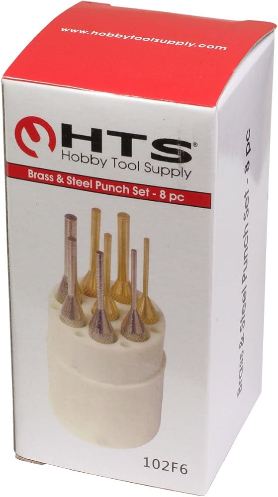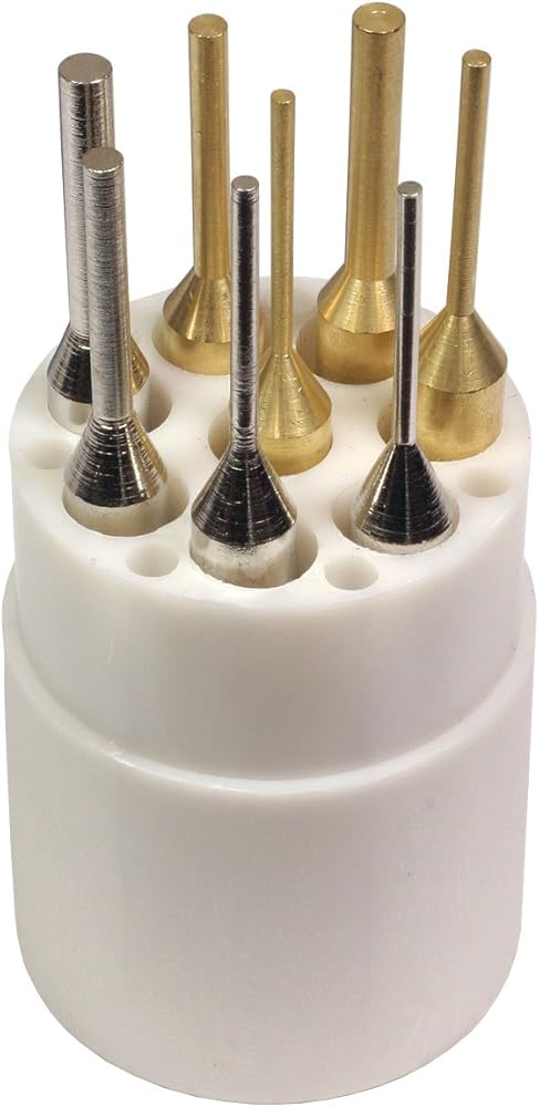 Set includes 4 brass and 4 hardened steel punches: 1.7mm, 2.5mm, 3mm, & 4mm