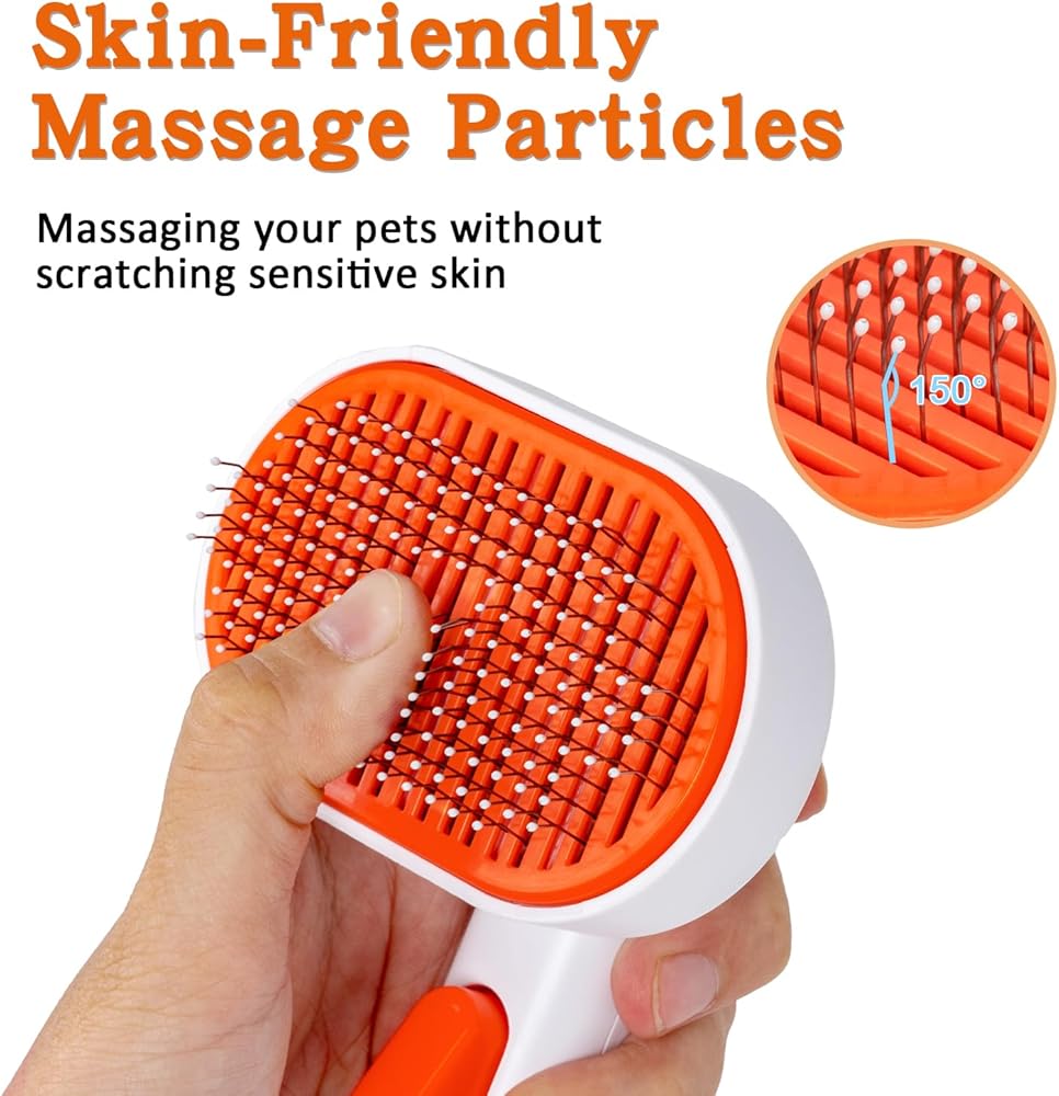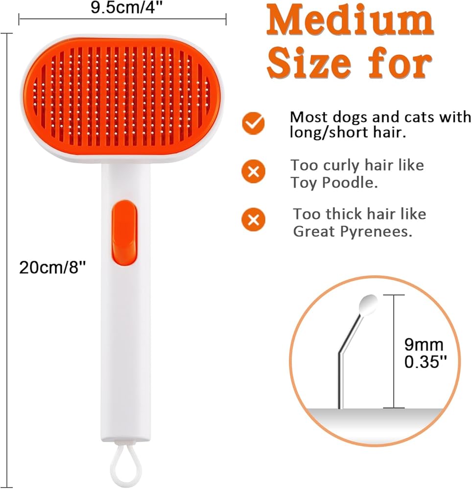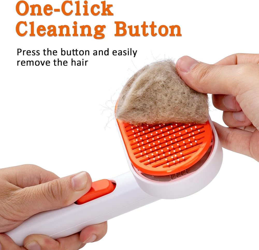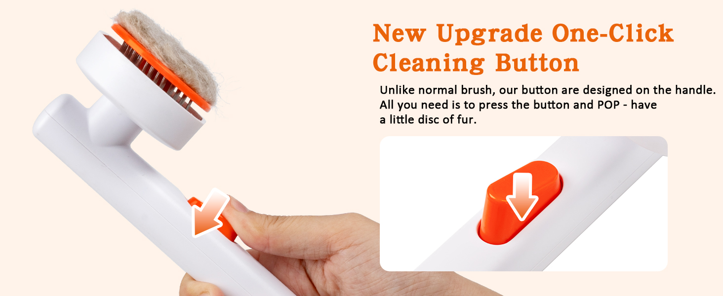 • 【زر تنظيف بنقرة واحدة】: مع تصميم التنظيف بنقرة واحدة، تقوم فرشاة القطط الخاصة بنا بتحرير الفراء بسهولة أكبر. يؤدي الضغط على الزر إلى قيام القرص بتحريك حصيرة الشعر الممشط إلى أطراف الأسلاك، مما يؤدي إلى كتلة يمكن تقشيرها بسهولة وإبعادها عن فرشاة شعر الكلب.