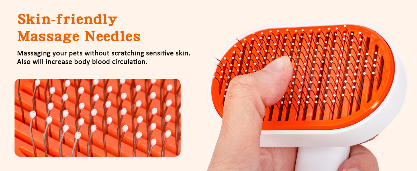 • 【إبر تدليك صديقة للبشرة】: مع تصميم إبر منحنية بزاوية 150 درجة، تتغلغل فرشاة القطط هذه للتساقط بعمق في الطبقة السفلية وتزيل الشعر السائب والتشابك، ويبدو فراء القطط أو الكلاب أكثر انتفاخًا. الدبابيس المصنوعة من الفولاذ المقاوم للصدأ الموجودة على فرشاة الكلب مع حبيبات تدليك آمنة، مثالية لتساقط وتدليك حيواناتك الأليفة دون خدش جلد حيوانك الأليف، حتى البشرة الحساسة. بالمقارنة مع معظم فرش الحيوانات الأليفة ذات الدبابيس المدببة، فإن فرشنا أكثر أمانًا.