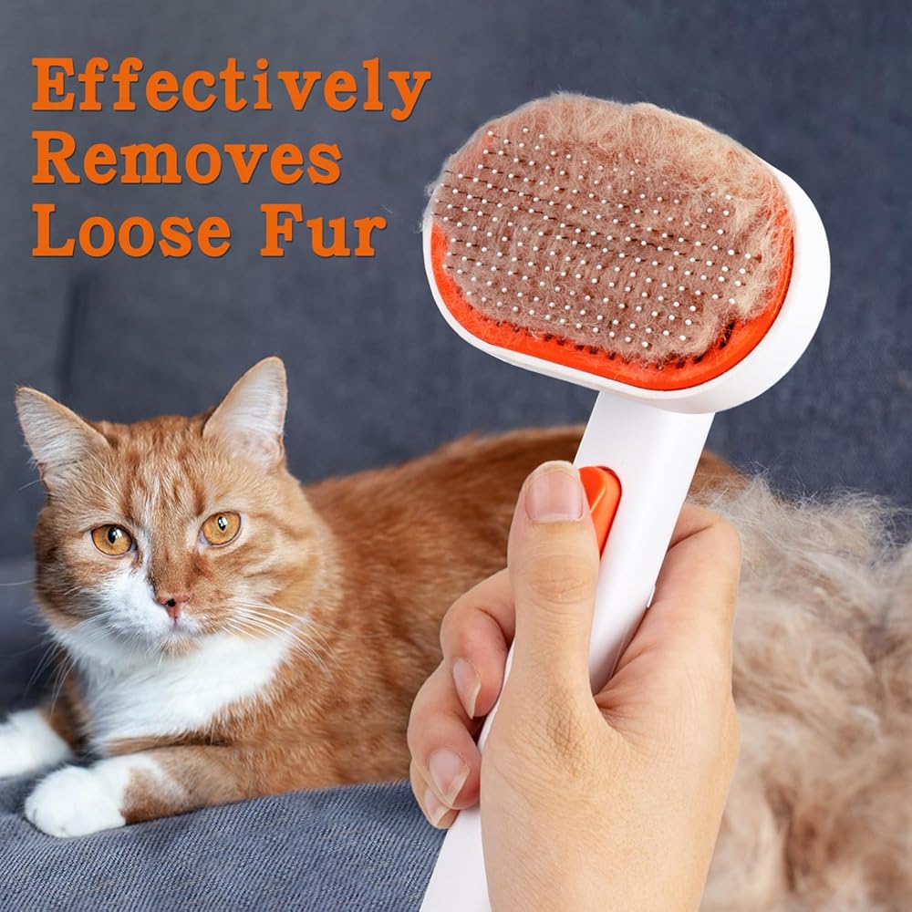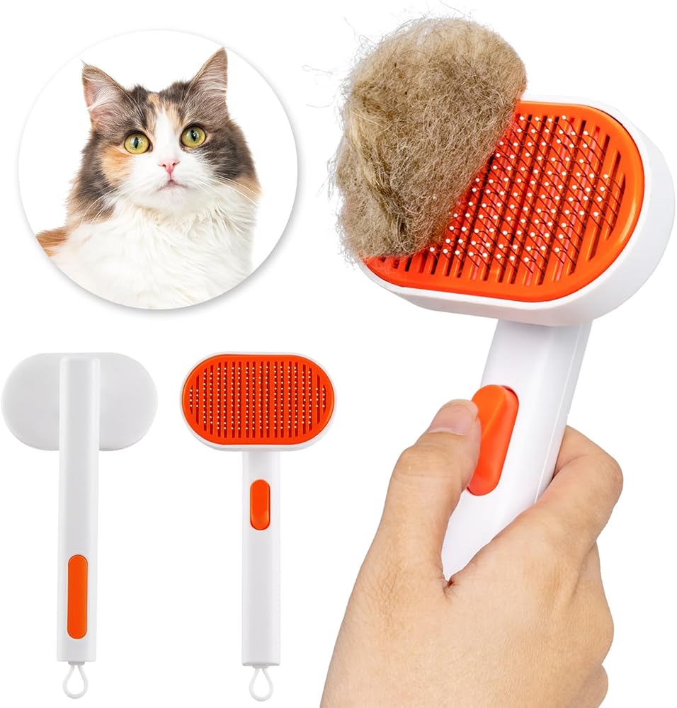 فرشاة للقطط من AIMYDOG مع زر تحرير، فرش للقطط لتساقط القطط في الأماكن المغلقة، فرشاة للقطط ذات الشعر الطويل أو القصير، فرشاة للعناية بالقطط، مشط للقطط لتدليك الأرنب الصغير يزيل الفراء السائب