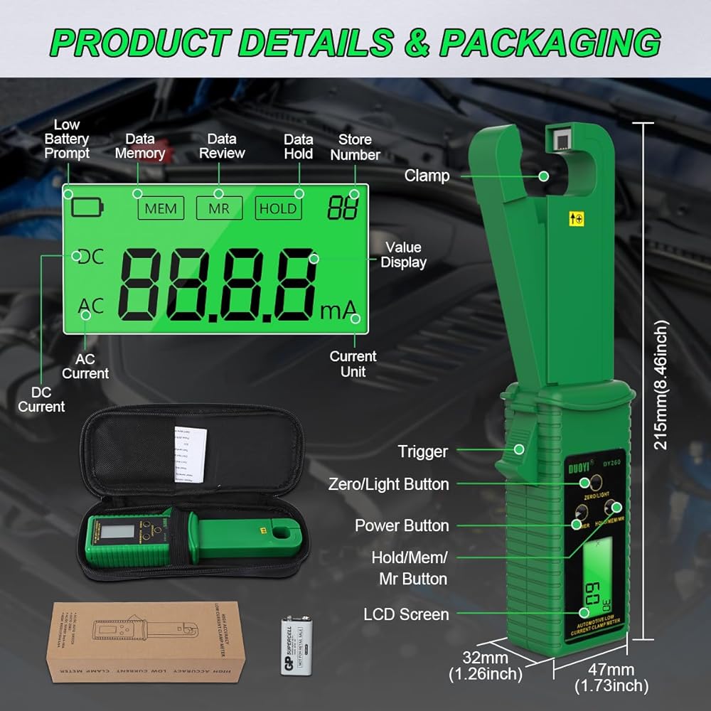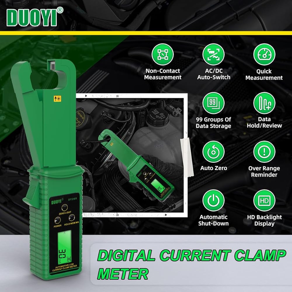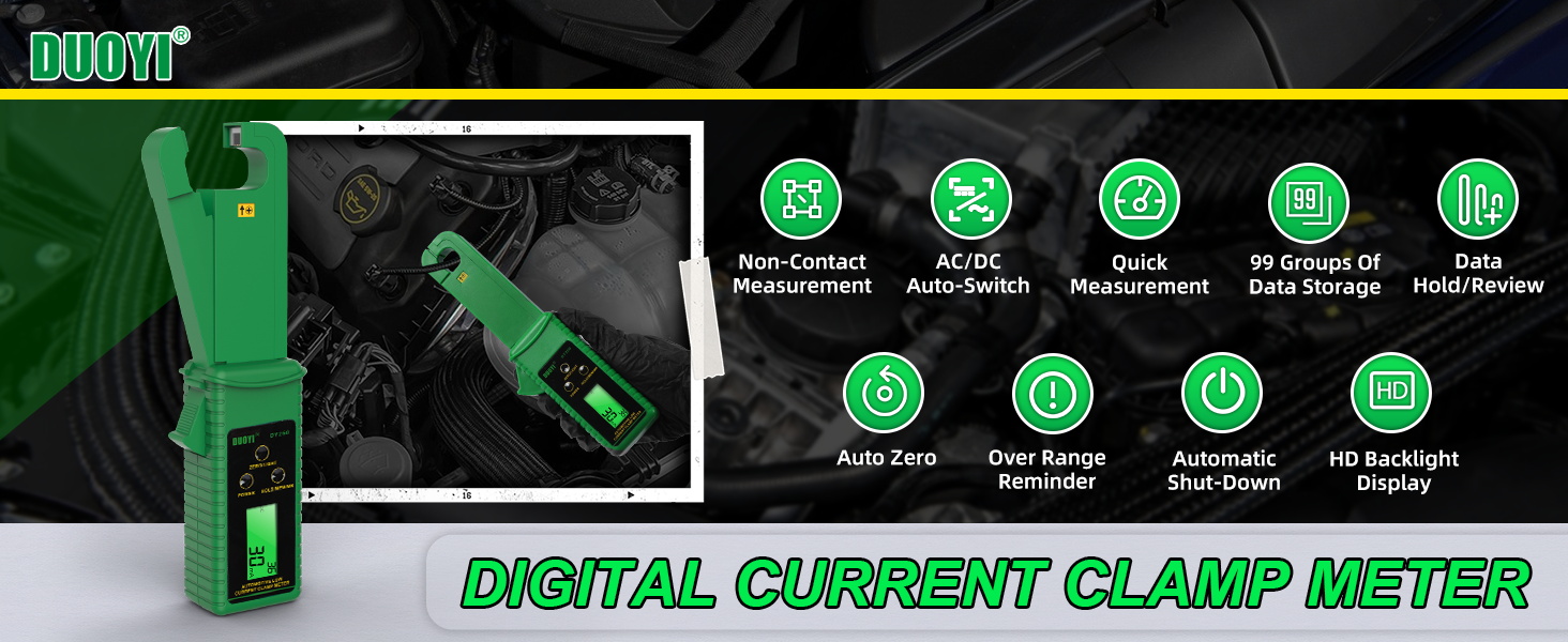 DUOYI المشبك متر التيار المتناوب/تيار مستمر أمبير متر قياس عدم الاتصال الرقمي المشبك متر التيار المتناوب/تيار مستمر التبديل التلقائي المشبك على أمبير متر السيارات تتراوح تيار مستمر أمبير المشبك متر