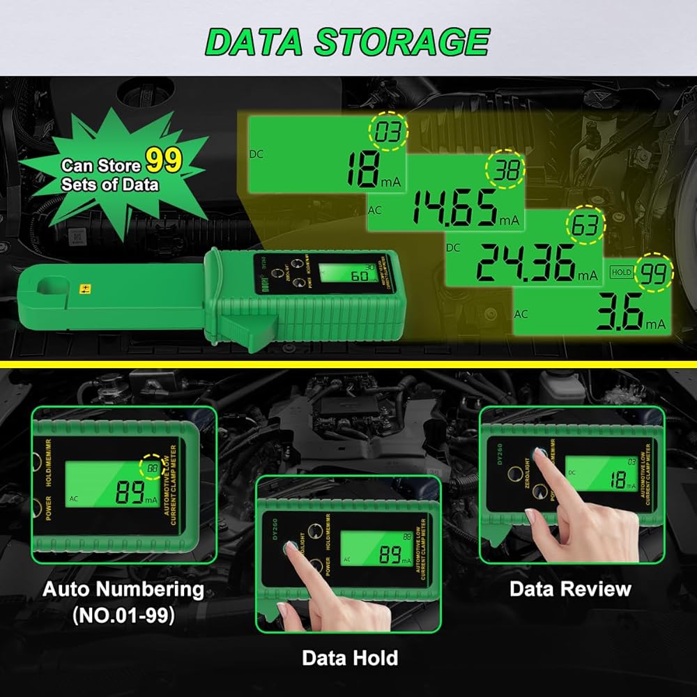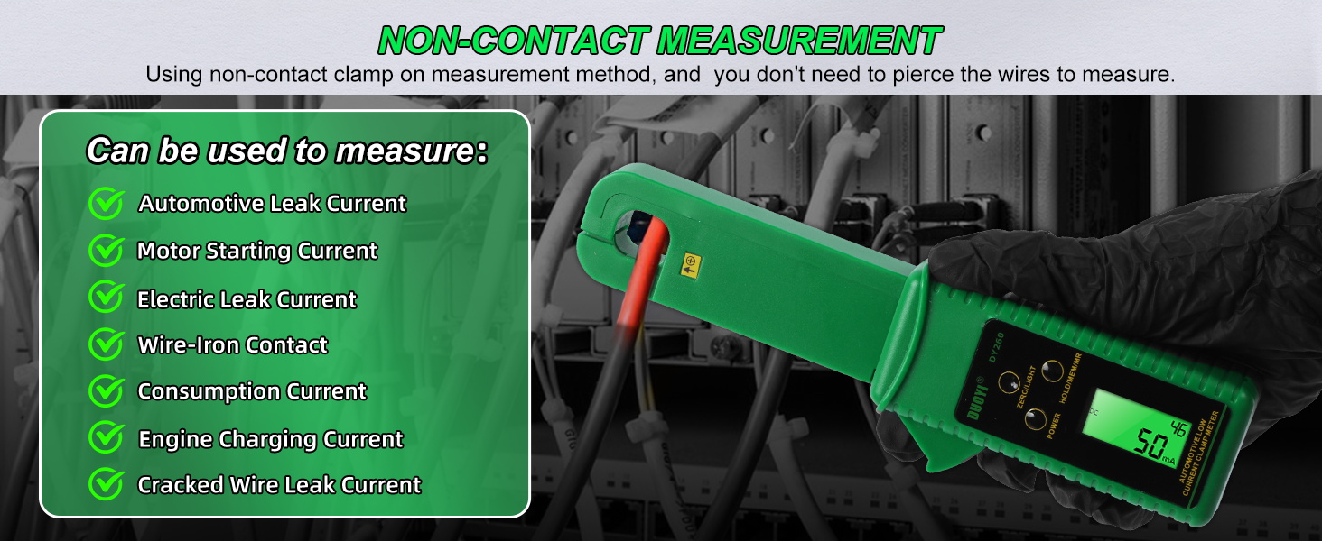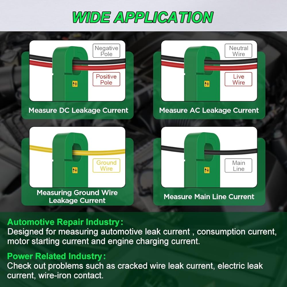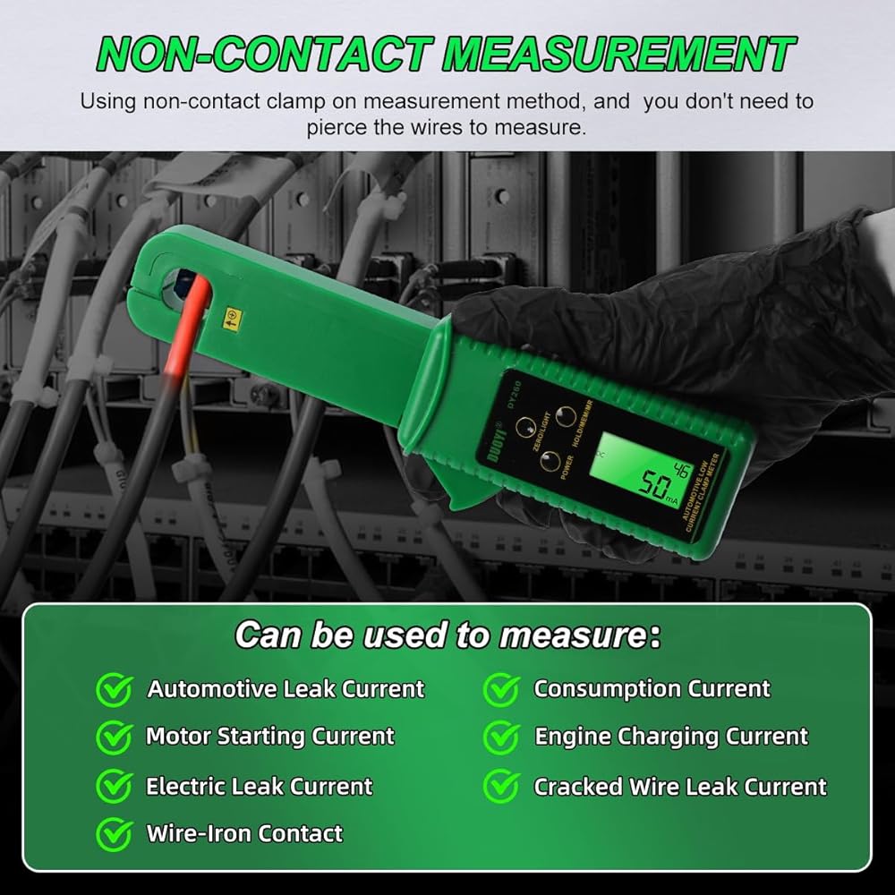 【جهاز قياس المشبك الرقمي بتيار متردد/تيار مستمر】مقياس المشبك مناسب لاختبار جهد 600 فولت وتحت الخط، باستخدام مشبك عدم الاتصال عند القياس، لا تحتاج إلى ثقب الأسلاك للقياس، آمن وفعال. يمكن استخدامه لقياس تيار تسرب السيارات، وتيار الاستهلاك، وتيار بدء تشغيل المحرك، وتيار شحن المحرك، بالإضافة إلى التحقق بسرعة من المشكلات مثل تيار تسرب الأسلاك المتشققة، وتيار التسرب الكهربائي، وملامسة الأسلاك والحديد.