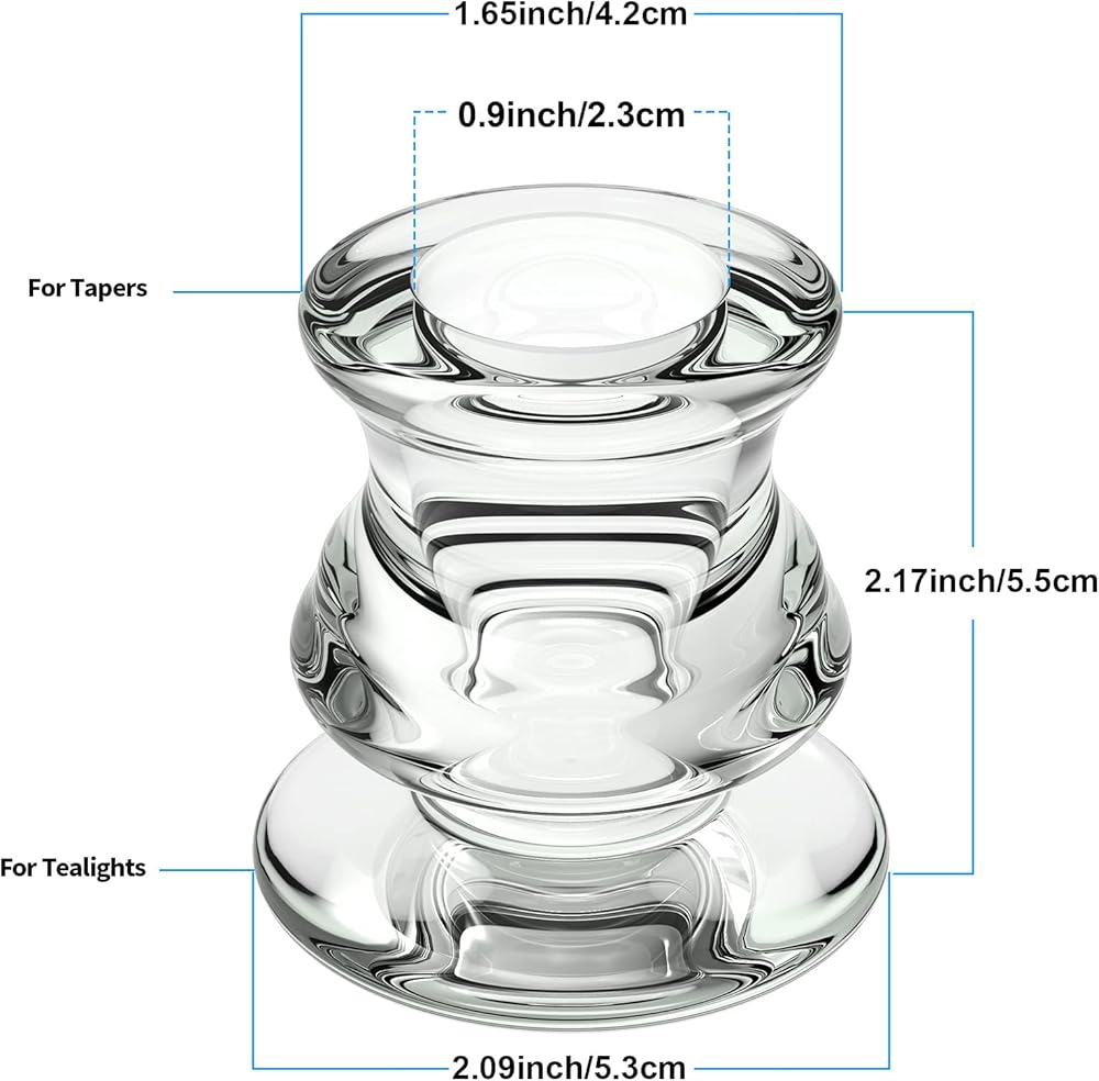 القطر الداخلي 0.9 بوصة يناسب معظم الشموع المستدقة، مثل العصا المستدقة بقطر 1/2 بوصة 2/3 بوصة 3/4 بوصة 4/5 بوصة 7/8 بوصة، يمكن وضع الجزء السفلي على شموع الشاي الخفيفة.