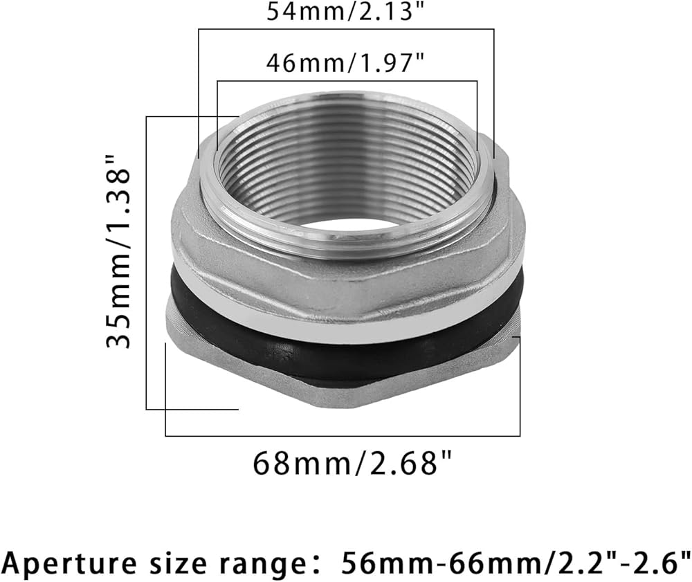 1.5 بوصة NPT أنثى ملولبة، مقاس خيط NPT ليس القطر الفعلي، إنه حجم الأنبوب الاسمي فقط. يرجى التحقق من المقاس قبل الطلب. ملاحظة: صامولة القفل هي خيط يسار، ويتم استخدام الخيط الخارجي لصامولة القفل ولا يمكن توصيله بالأنبوب.