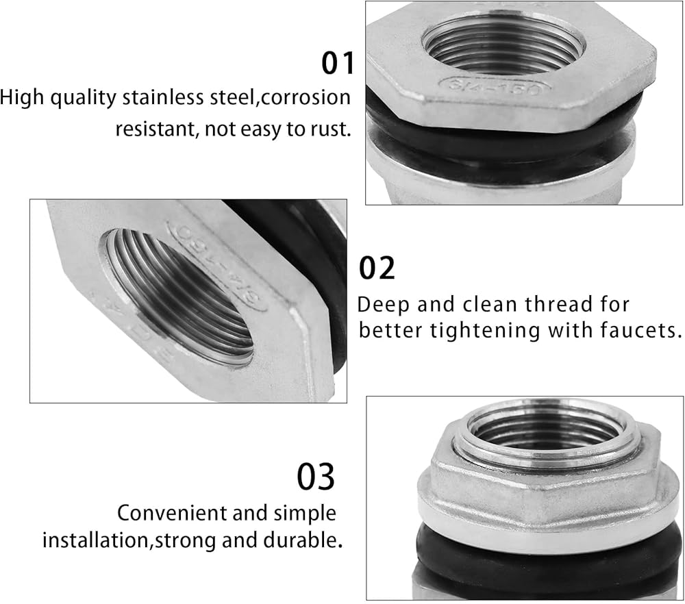 سهل التركيب، تحتاج إلى ثقب حوالي 56-65 مم للتركيب، ثم قم بتجميع موصل خزان المياه وموصل القابس معًا، ملولب من الطرف الأمامي، وقم بتغطية القابس لمنع دخول الأوساخ والغبار إلى خزان المياه والحفاظ عليه ينظف.