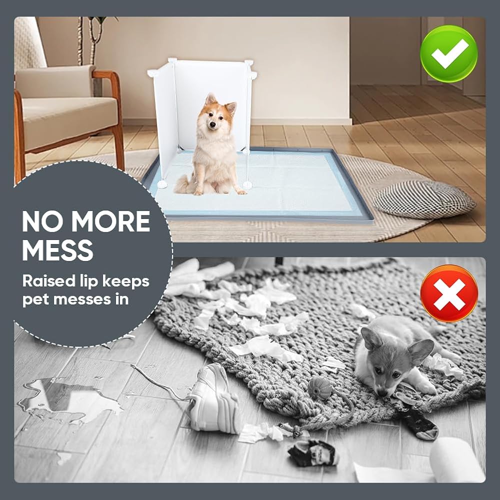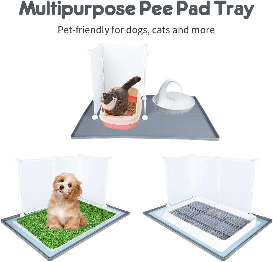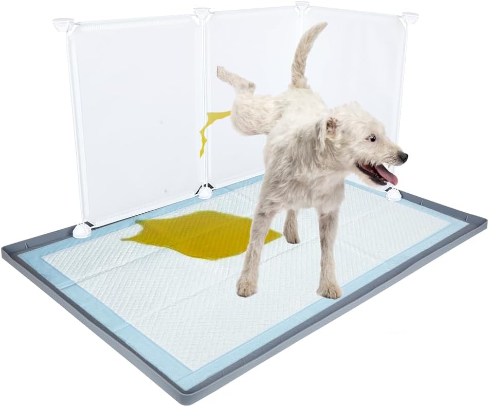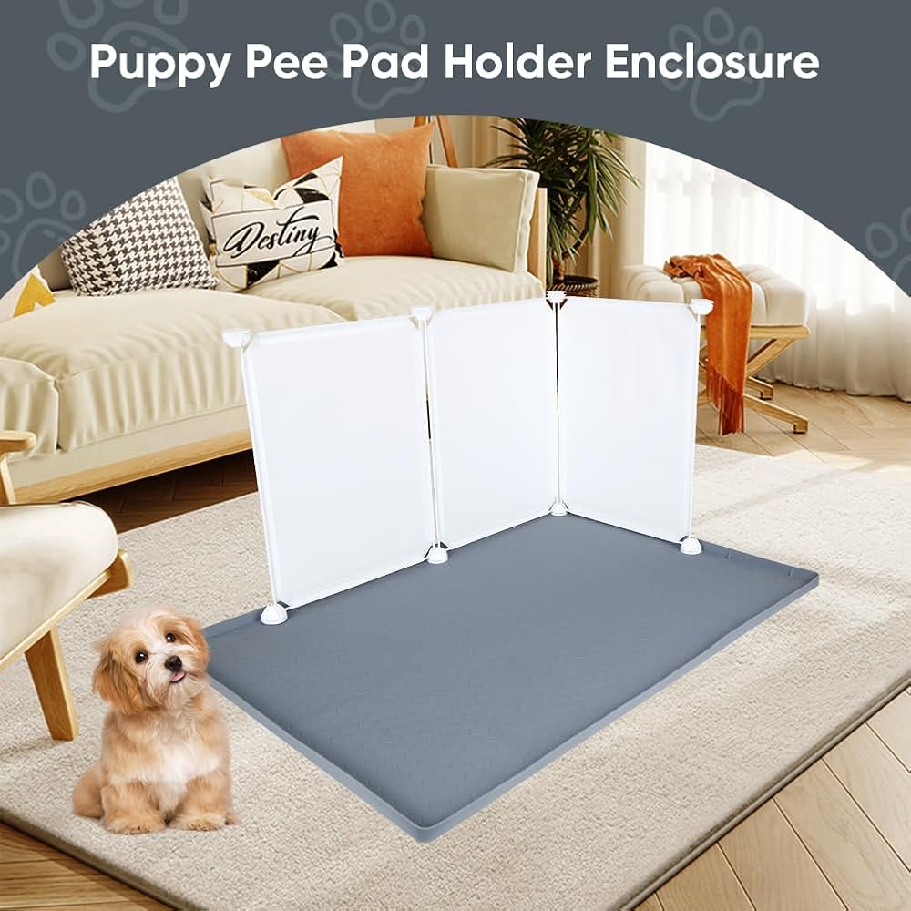 Perfect Protection for Wall and Floor: Does your dog lift his leg to pee and end up making your walls instead of the pee pad? Our puppy pad holder with Enclosure Splash Guard protects floors, carpets, and fabrics from urine spills or leaks. Great for house training.