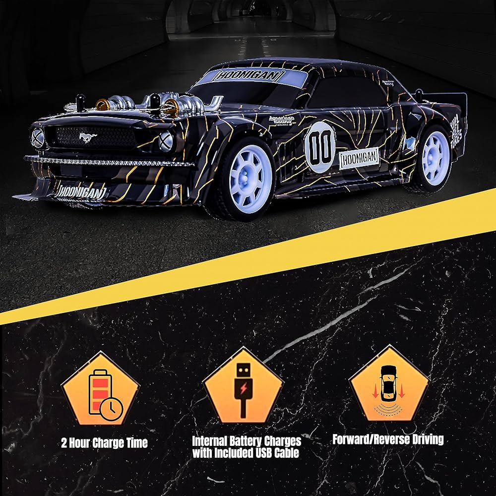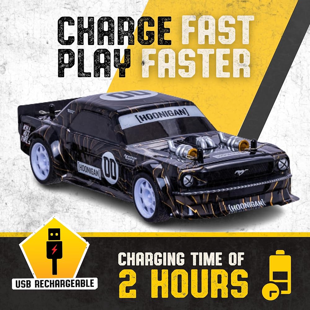 • USB Rechargeable: This Hoonigan RC Car comes equipped with a 3.7V rechargeable battery that can easily be charged using a USB port.