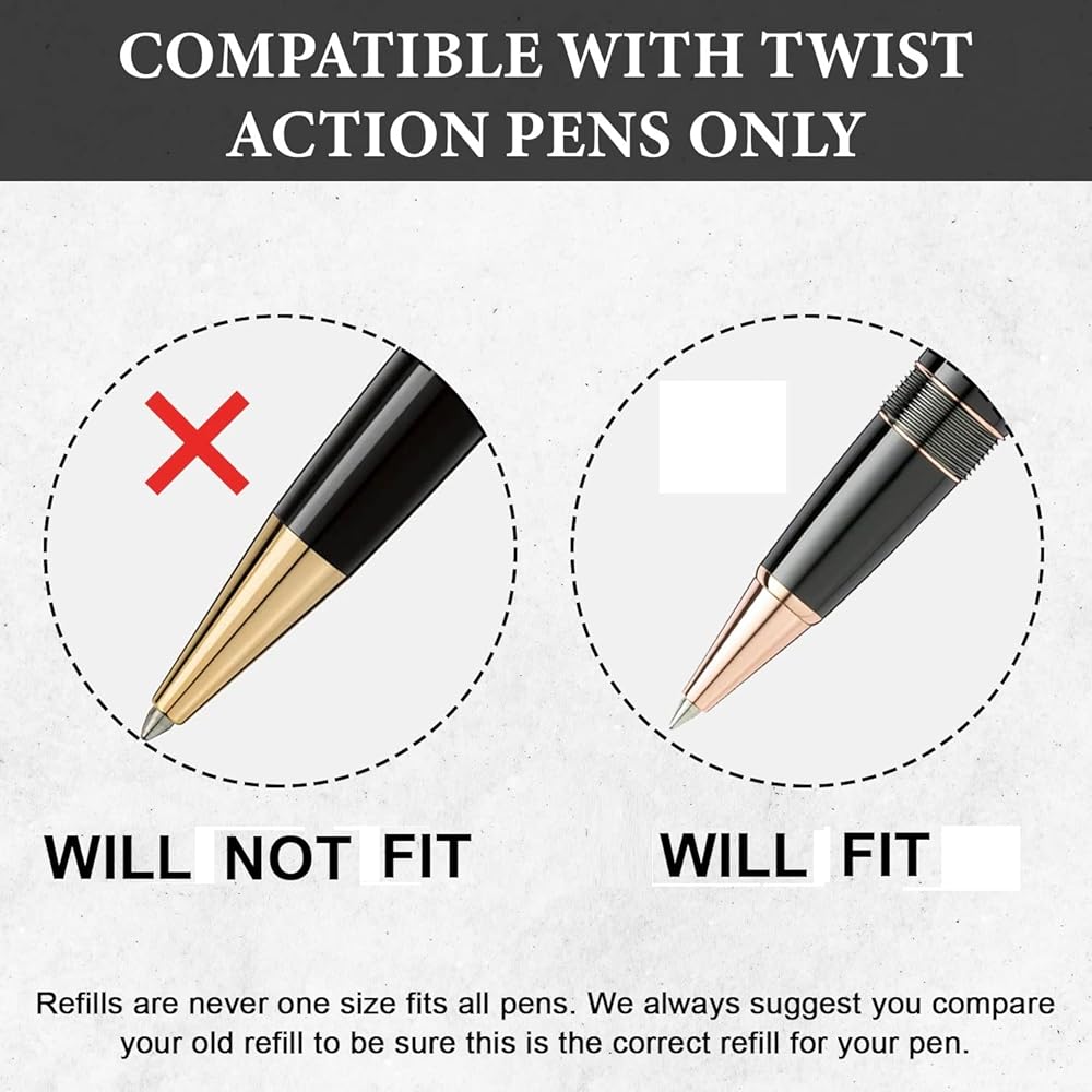 Monteverde USA pen refills utilize a patented soft roll technology. These refills will fit only capped rollerball pens and not the twist-action ballpoint. Please look at your current refill to be sure it has threads near the tip to be sure you are ordering the correct refill
