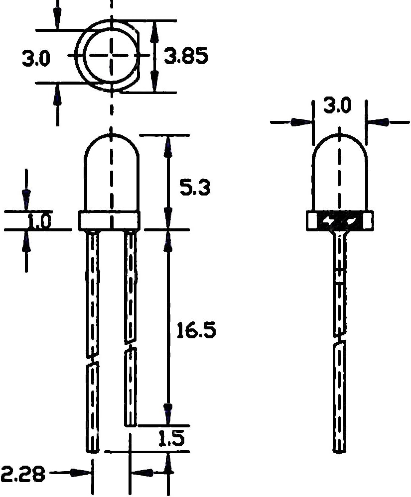 • قطر الثنائيات: 3 مم؛ الجهد الأمامي: 1.9-2.1 فولت