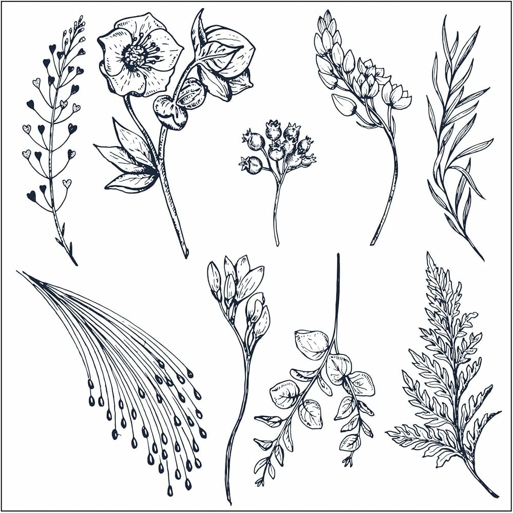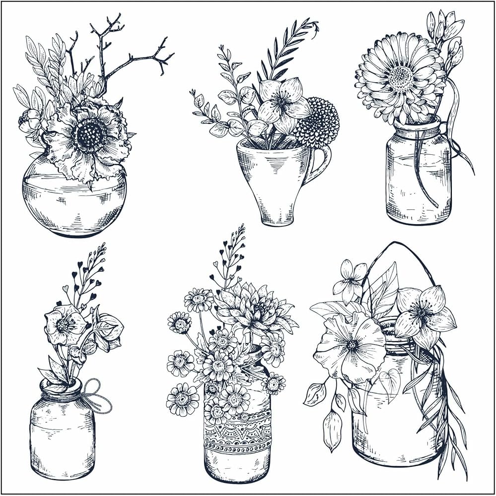 Guirongxin 5 أوراق فروع الزهور ومزهرية ختم شفاف شفاف لصنع سجل القصاصات، 5.6 × 5.6 بوصة/11 × 9 سم/4.4 × 3.5 بوصة