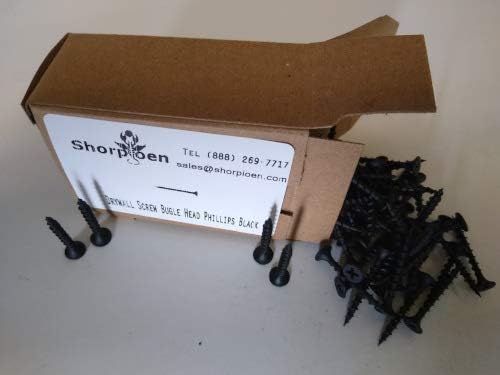 Shorbioen 100-Pack 6 x 1 1/4 فيليبس بوغل رئيس خيط خشن دريوال برغي أسود فوسفات لوح جسيمات BC-0620CPG
