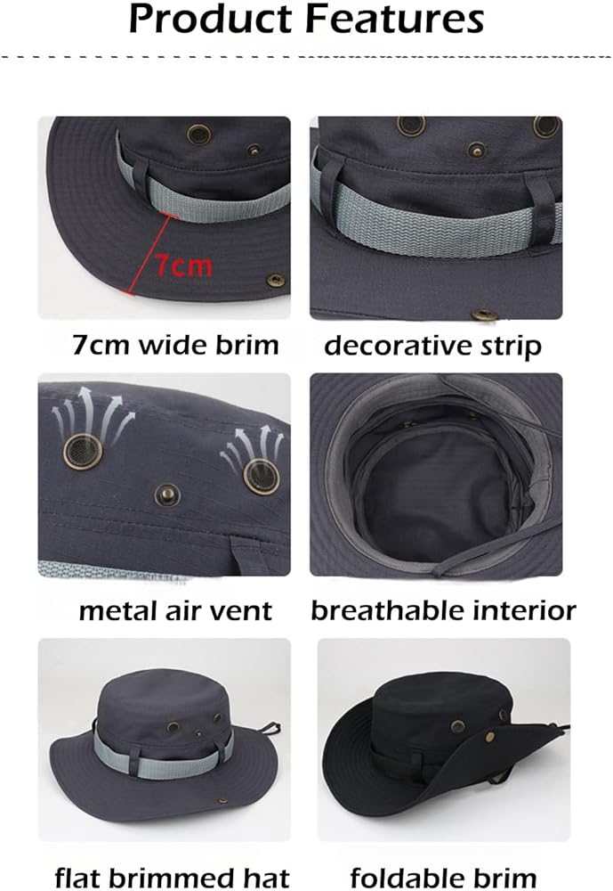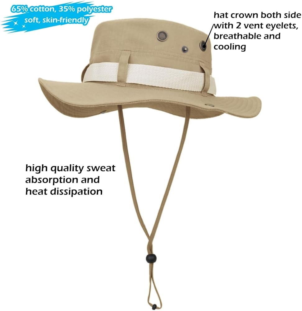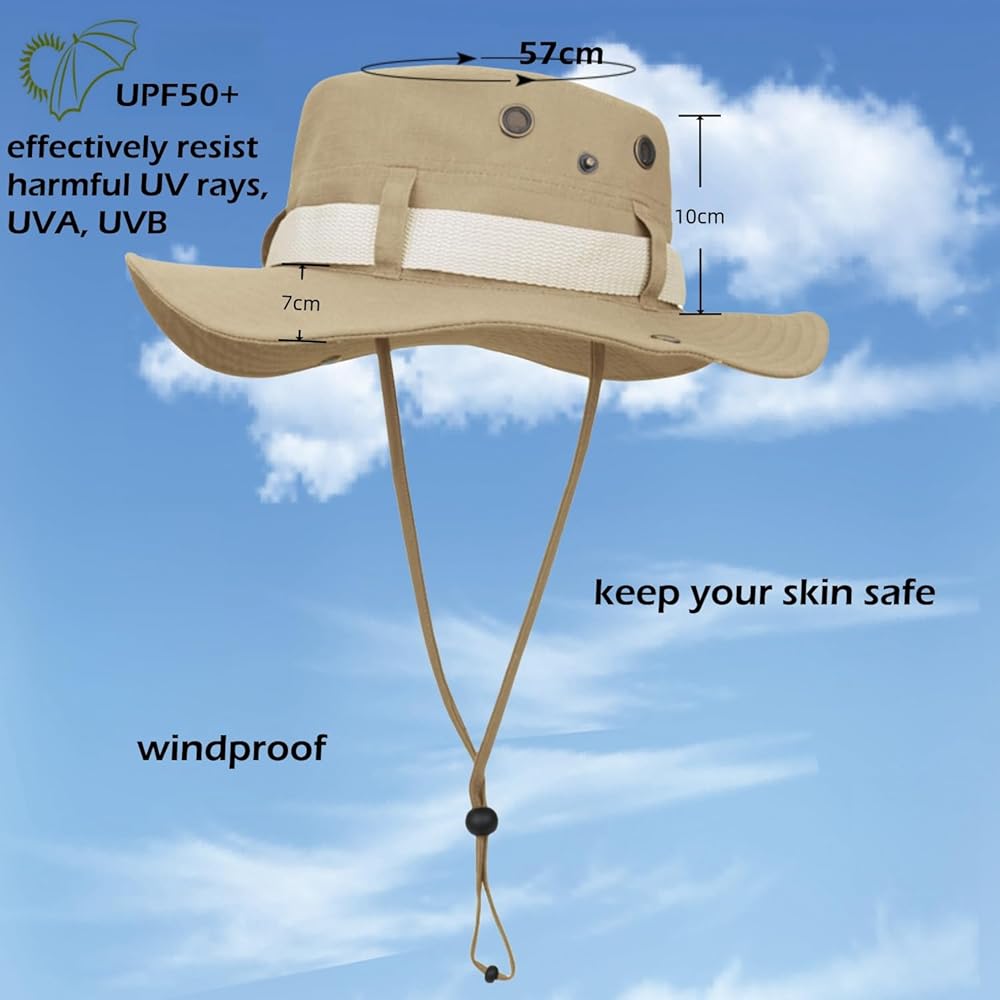 حماية من الشمس ومقاومة للرياح: قبعة صيد بحافة عريضة 7 سم/2.76 بوصة مع حزام، تقاوم بشكل فعال الأشعة فوق البنفسجية الضارة، والأشعة فوق البنفسجية فئة A، والأشعة فوق البنفسجية فئة B، وتمنع تسمير البشرة وحروق الشمس، UPF50+؛ حزام ذقن قابل للتعديل يثبت القبعة في مكانها في الأيام العاصفة