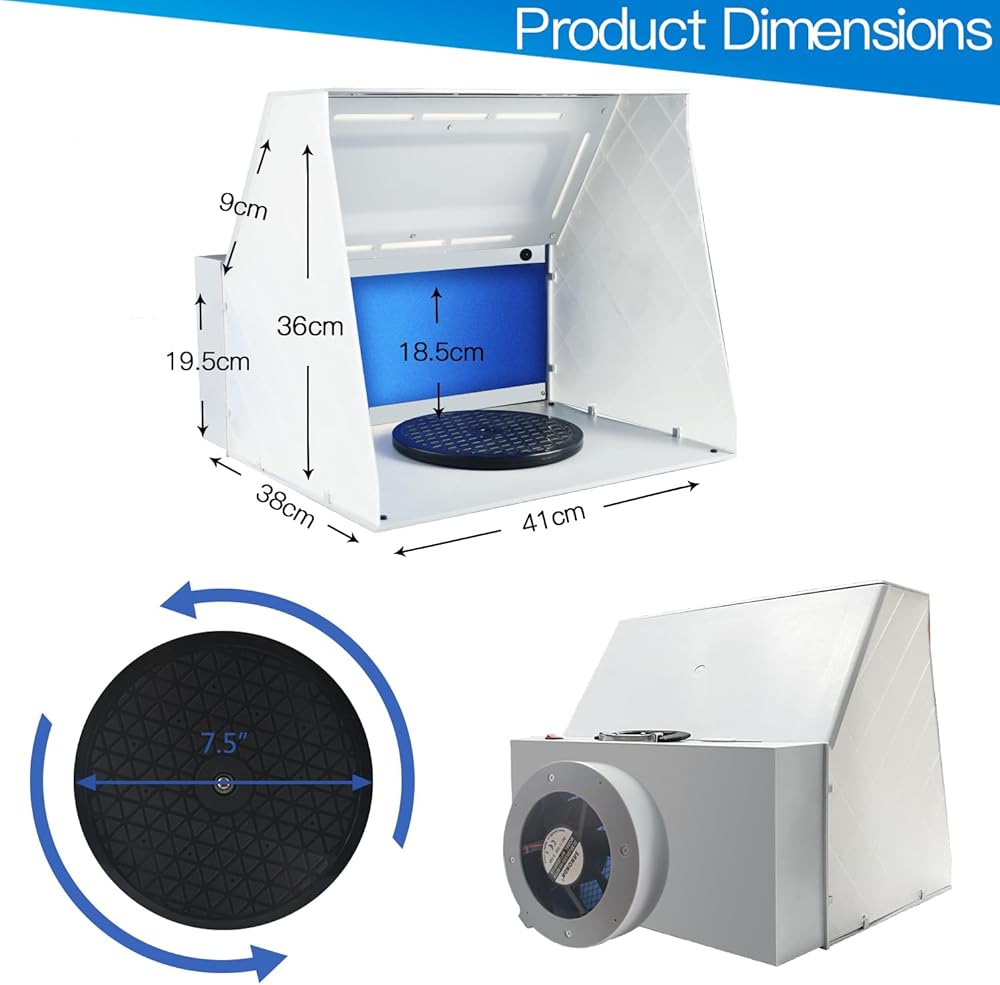 1. الحجم الإجمالي لحجرة الرش هو 16.1 بوصة × 15 بوصة × 14.2 بوصة (العرض × العمق × الارتفاع)، وهو كبير بما يكفي لتناسب النماذج أو المنمنمات بالكامل بالداخل.