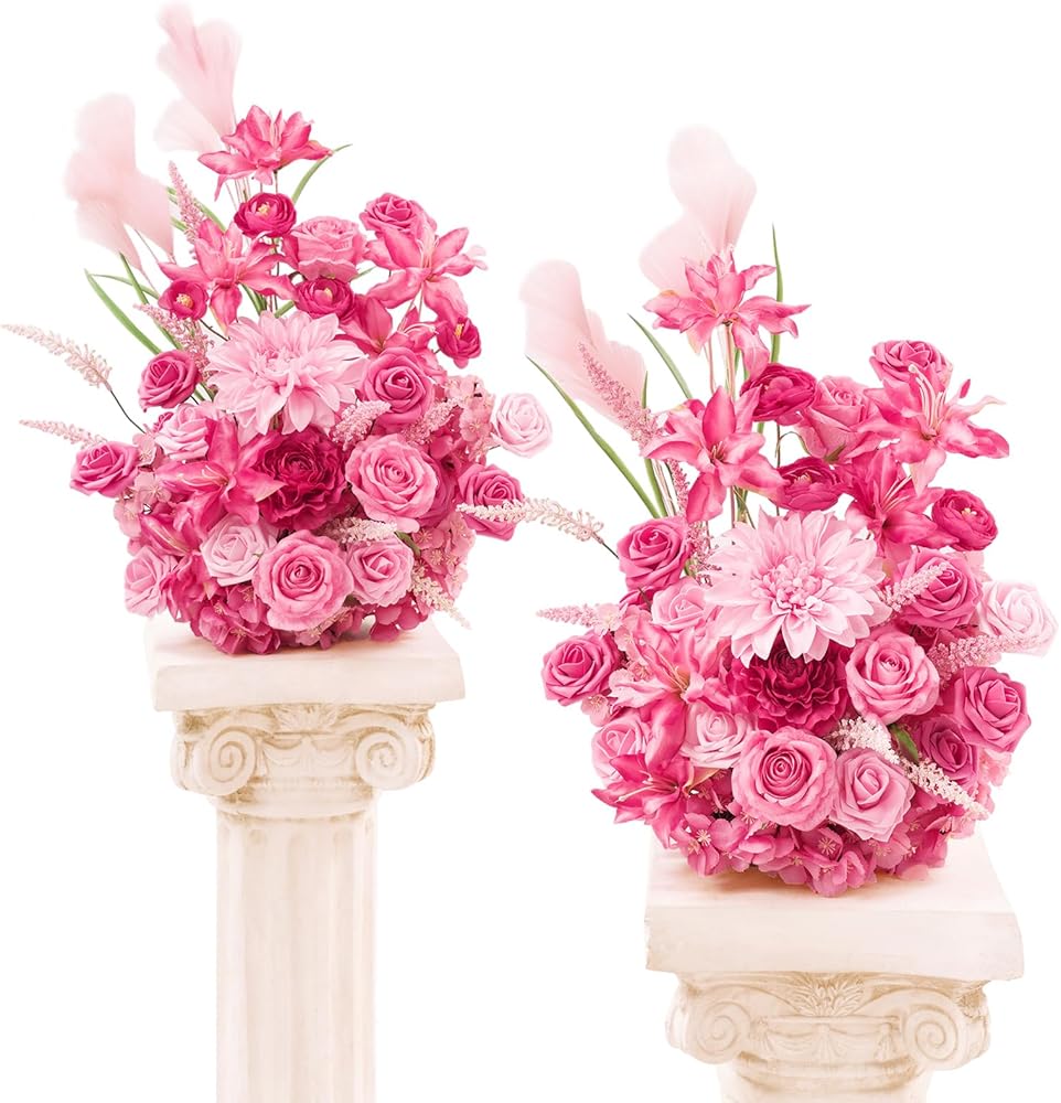 حجم العبوة: تحتوي كل عبوة على قطعتين من الزهور المستقلة. أبعاد كل تشكيلة زهور تقريبًا: 16 بوصة عرض × 24 بوصة ارتفاع.