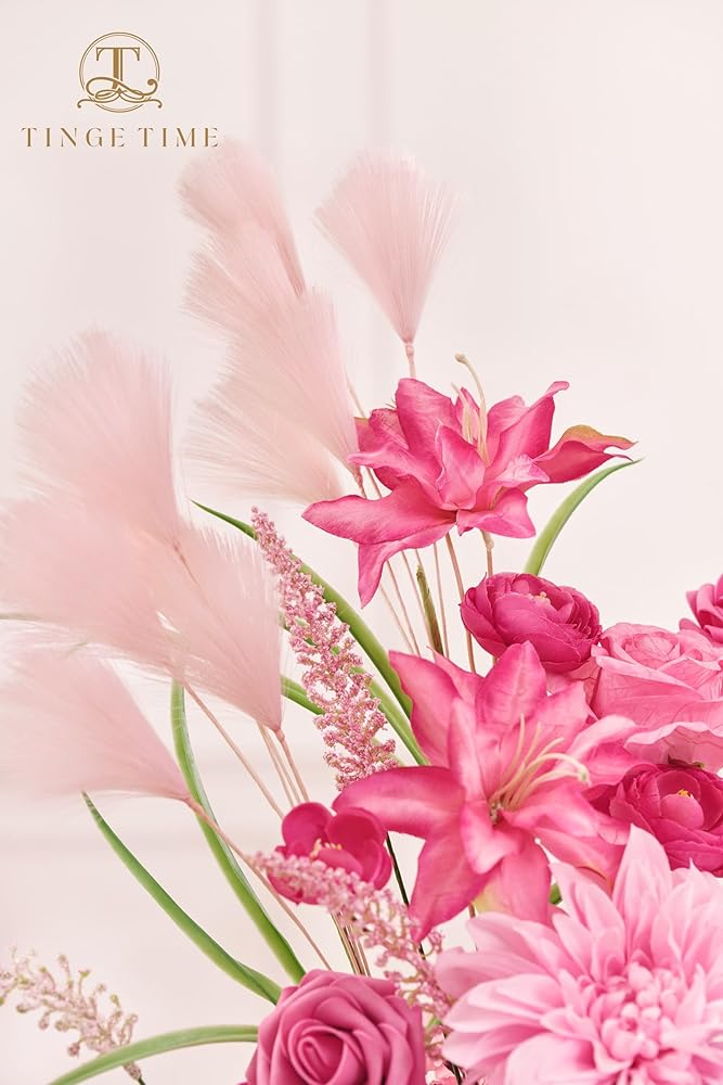 المواد: ترتيب الزهور مصنوع من الحرير الواقعي ومادة إسفنجية من البولي إيثيلين. بما في ذلك الورد المستدير لمعجون الفاصوليا، وحوذان معجون الفاصوليا، وأقحوان معجون الفاصوليا، ومعجون الفاصوليا سيمبيديوم، والهندباء الوردية. ورود وردية فاتحة من رغوة البولي إيثيلين، وورد معجون الفاصوليا والورد الأبيض، المظهر العام مرن وحيوي، ومليء بالنكهة الطبيعية.