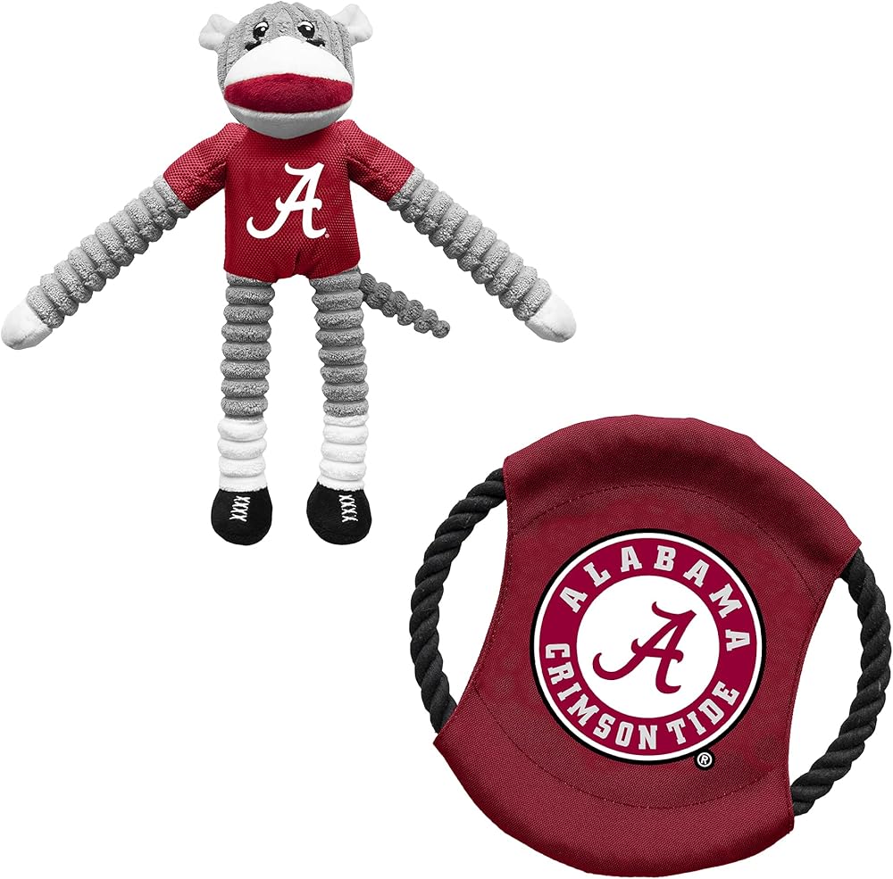 This officially licensed Pet Toy Combo Set comes with a Team Sock Monkey and a Team Flying Disc. The Sock Monkey Pet Toy is great for tossing, tugging, and snuggling while the Team Flying Disc Pet Toy is a great way for you and your pooch to get exercise at a park, in your backyard, or at the tailgate. A great gift set for your furry fan!