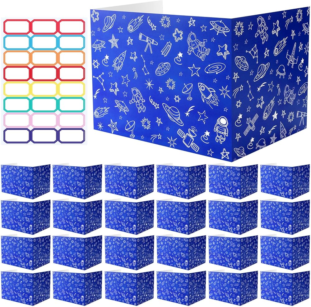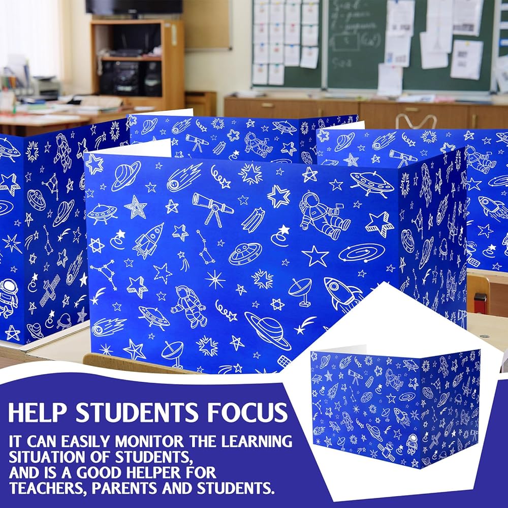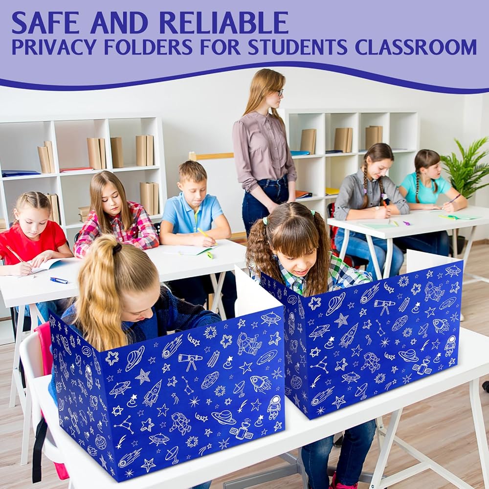 Harloon 24 PCS لوحات الخصوصية لمقسمات مكتب الطلاب للطلاب من كرتون مجلدات خصوصية الفصول الدراسية مجلد Carrel Buffiders للاختبار يقلل من الهاء (مساحة زرقاء)
