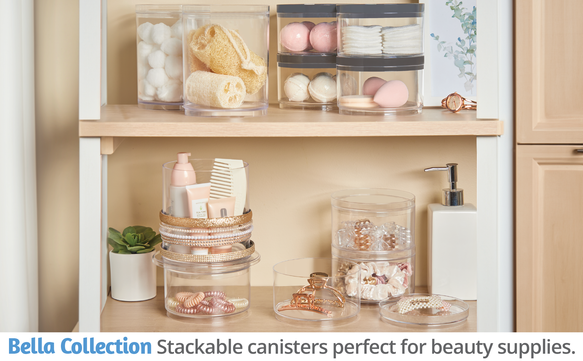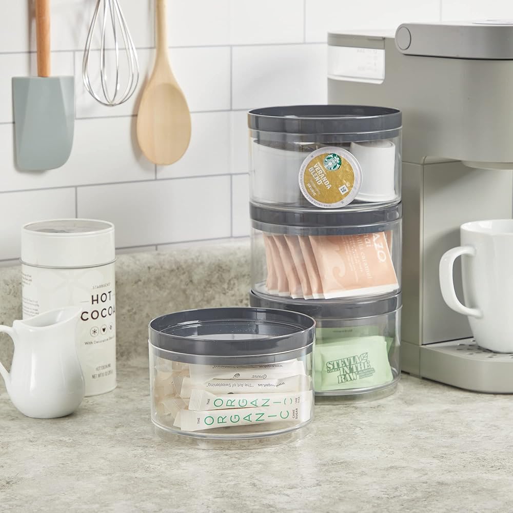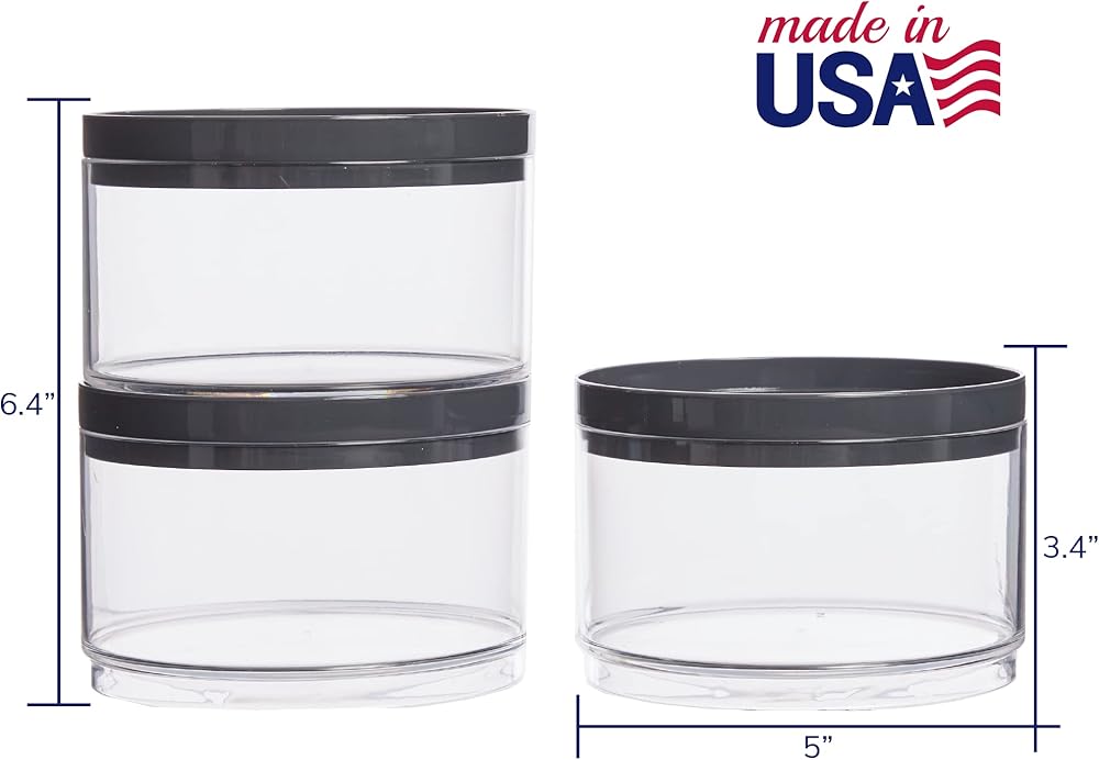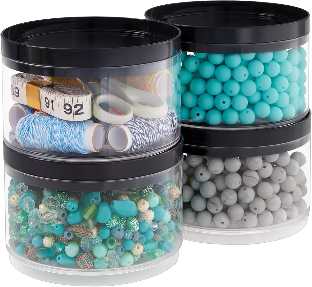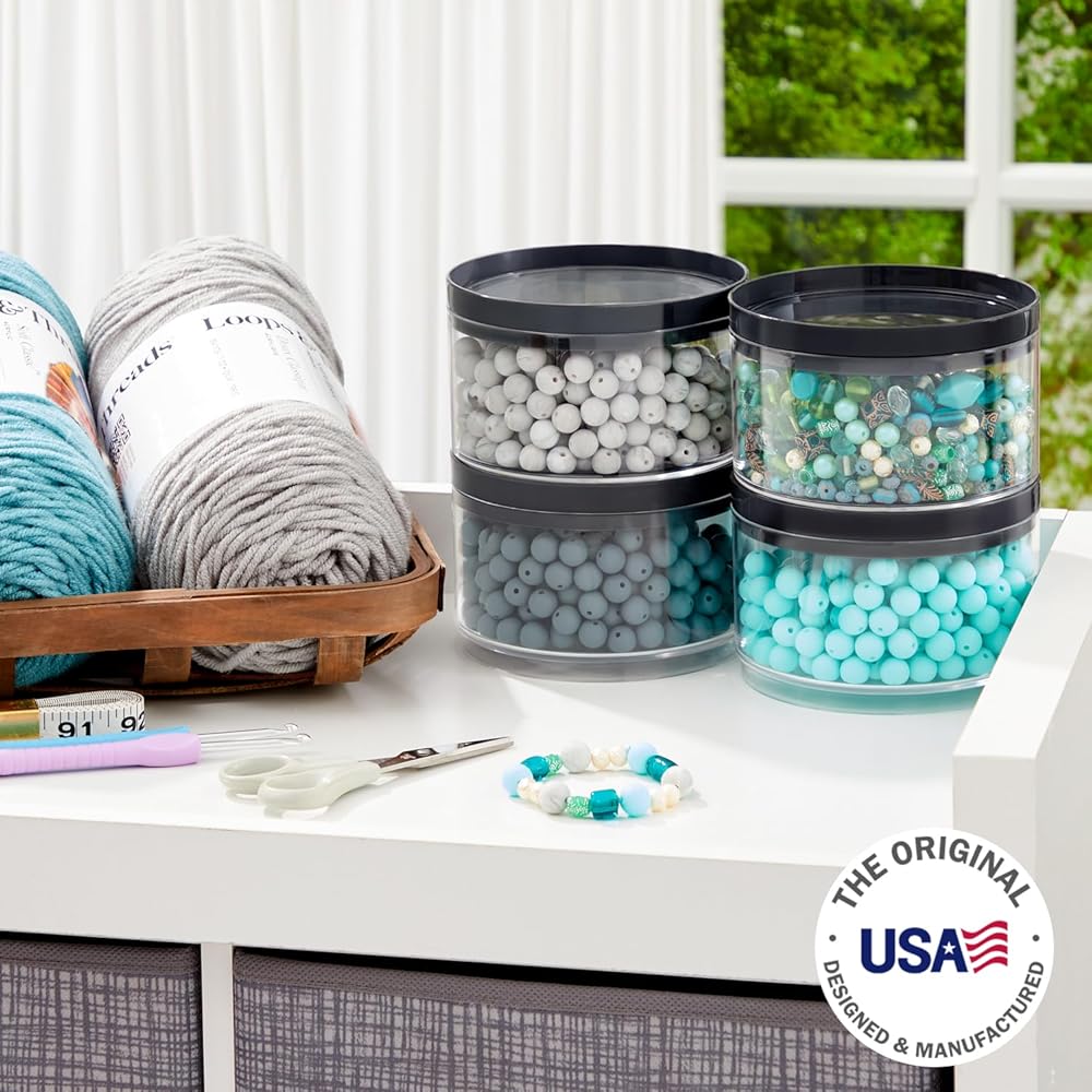 حاوية بلاستيكية شفافة قابلة للتكديس من STORi Bella (مجموعة من 4) منظمات تخزين دائرية بأغطية رمادية للخرز والفنون واللوازم الحرفية | صنع فى أمريكا