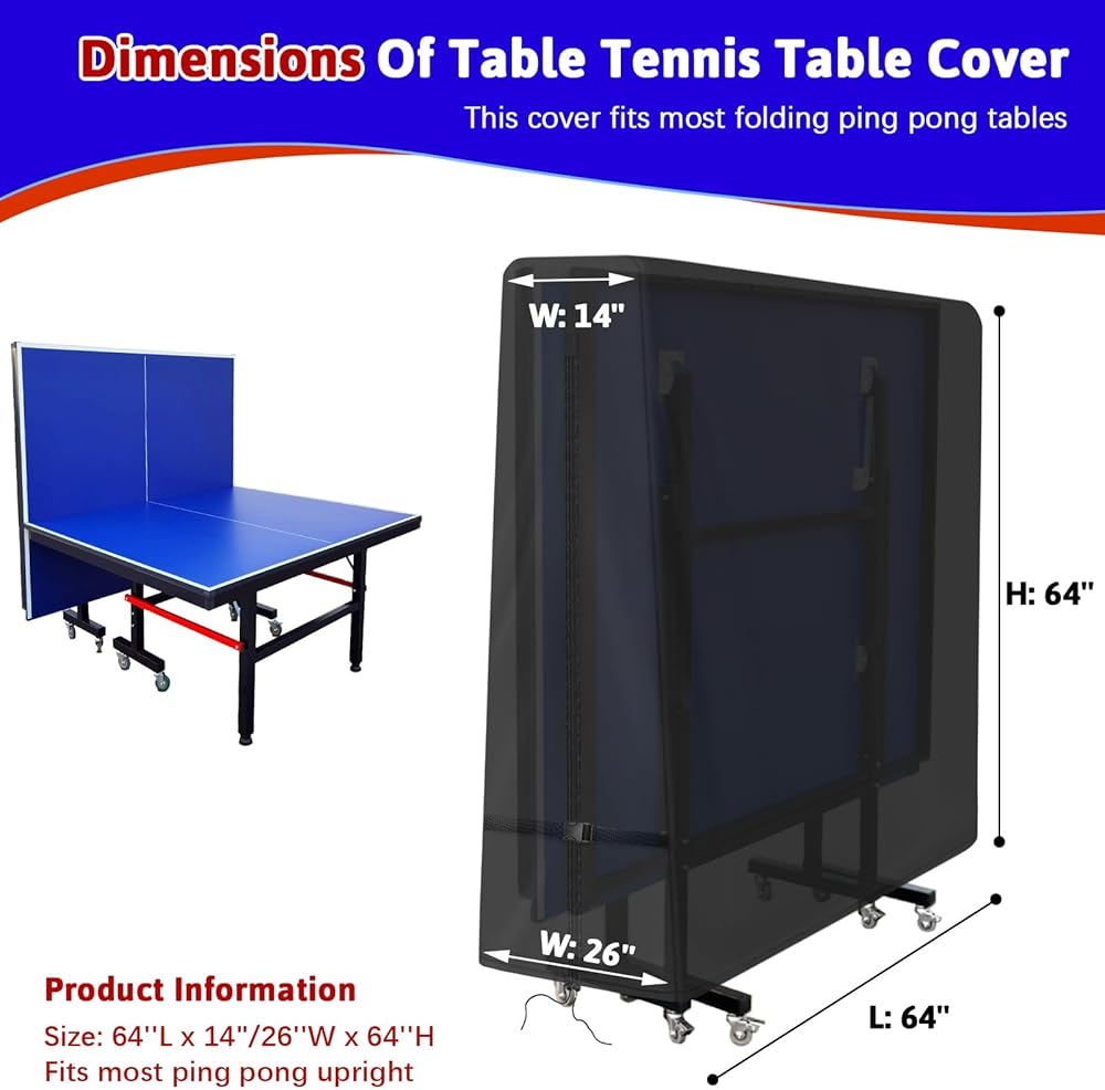 مقاس الغطاء يناسب معظم الطاولات - مقاس غطاء طاولة بينج بونج: 65 × 26 × 64 بوصة، يناسب معظم طاولات بينج بونج في وضع مستقيم. يغطي الطاولة بأكملها، بما في ذلك الأرجل، ويناسب مثل القفاز.