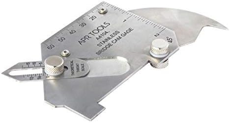 This rugged Bridge Cam Type Weld Gauge is fabricated in stainless steel used to measure the important Dimensions of weld preparations & of completed Butt and fillet welds. It is intended for general fabrication work in the shop or on-site.