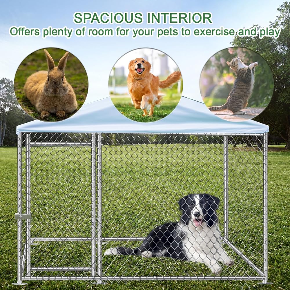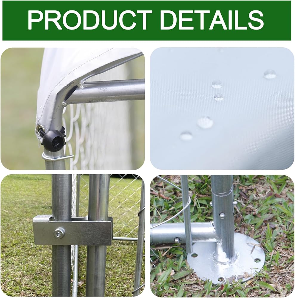 • [قوي ومتين] بيت الكلاب الخارجي هذا مصنوع من إطار معدني مجلفن قوي، لا داعي للقلق بشأن الصدأ في الهواء الطلق. سمك الأنبوب 0.85 ملم، وهو مستقر في الهيكل ومناسب لوضعه في الخارج أو في الفناء. متين ضد التلف.