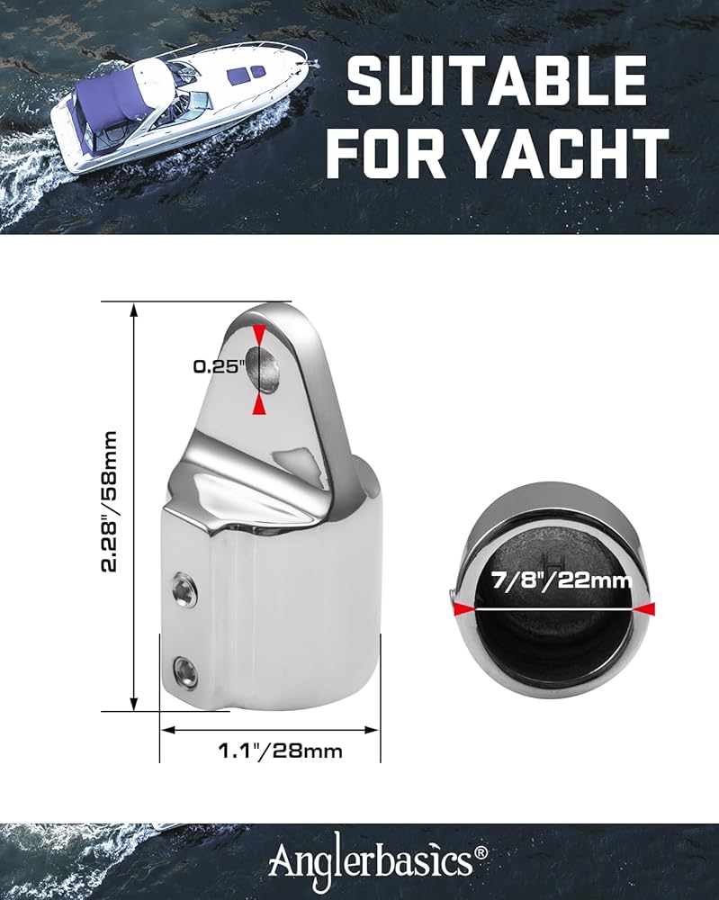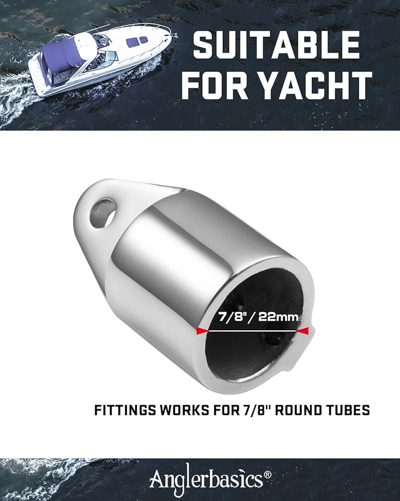 Anglerbasics Bimini Top Cap Eye End Boat Fitting, 316 Stainless Steel Bimini Top Hardware Fits 7/8" 1” OD Round Tube, Marine Hardware with L Shape Allen Wrench