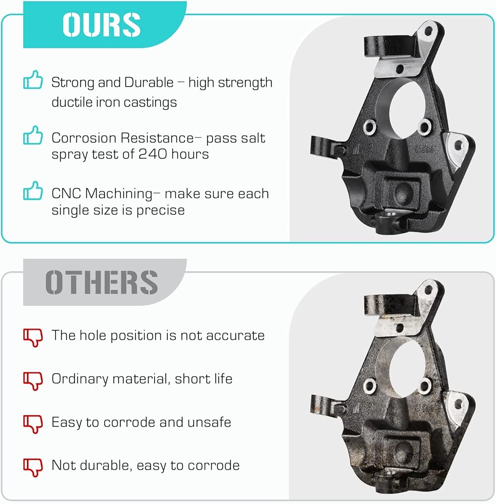 【High Reliability】Each spindle is built from OEM grade high strength ductile iron, providing the structural integrity to meet and exceed all factory specifications & requirements.