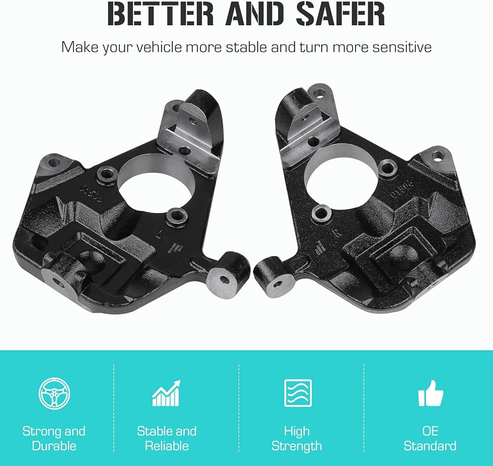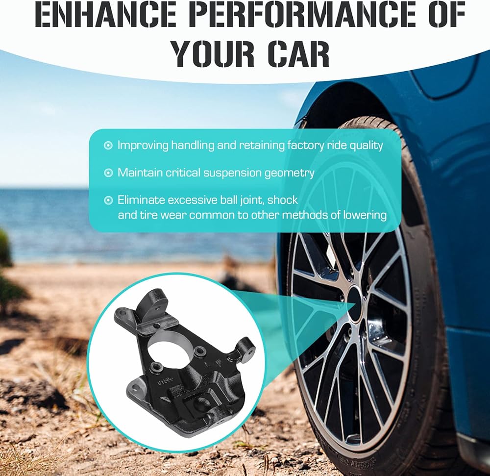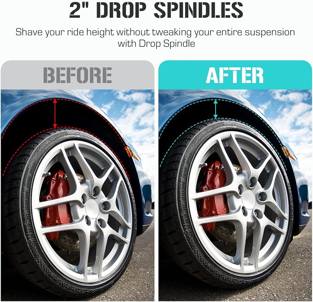 【Enhance Performance】These spindles will lower the front of your vehicle by 2", maintain critical suspension geometry and eliminate excessive ball joint, shock and tire wear common to other methods of lowering. While improving handling and retaining factory ride quality.