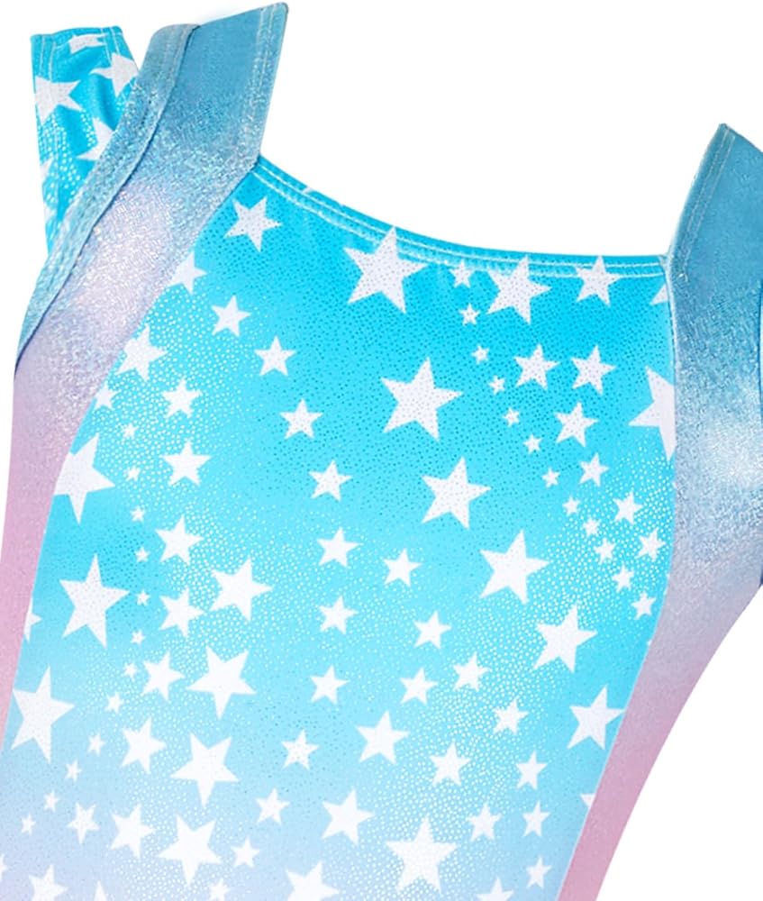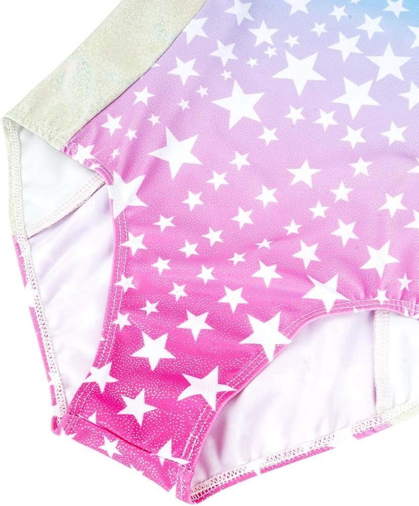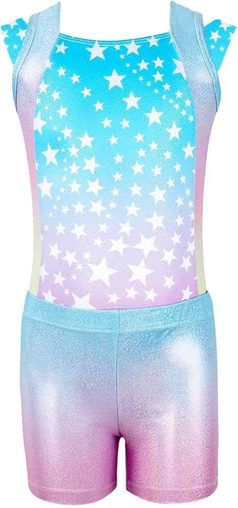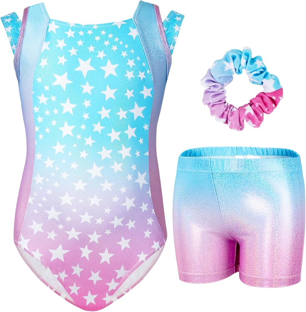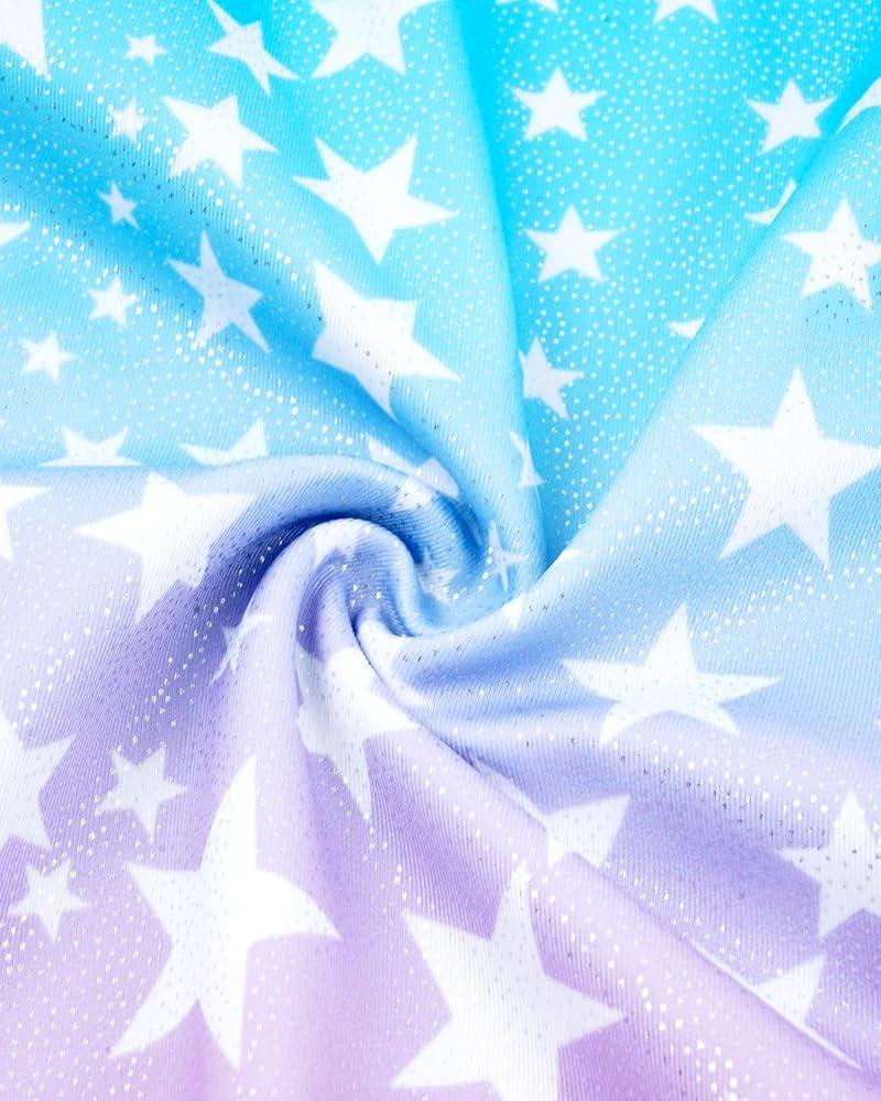 نمط لامع لطيف: ثوب الجمباز للفتيات من قطعة واحدة مع شورت ونمط نجمة لامعة مطبوعة ثلاثية الأبعاد لجعل فتاتك متميزة عن الآخرين.