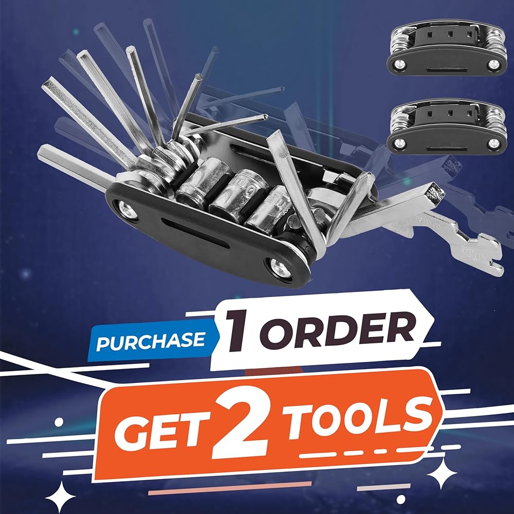 قم بشراء طلب واحد واحصل على قطعتين، وأصلح أي مشكلات تتعلق بالدراجة أثناء التنقل باستخدام الأداة المتعددة المحمولة الخاصة بالدراجة، وهي الأداة المتعددة المثالية لركوب الدراجات لجميع احتياجات الإصلاح الخاصة بك.