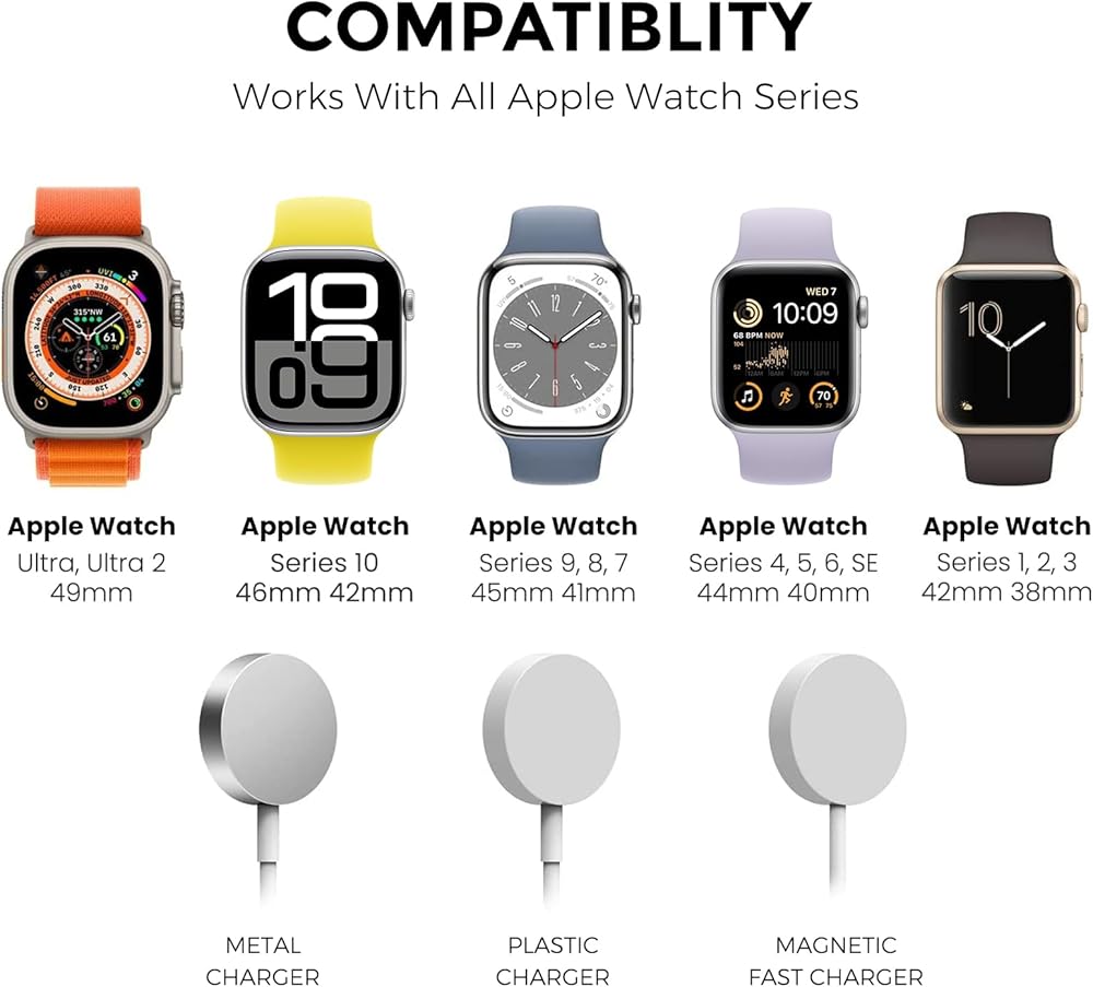 • ⌚【التوافق 】متوافق مع Apple Watch Ultra 2 (2023)، السلسلة 9 (2023)، Ultra (2022)، السلسلة 8 (2022)، السلسلة SE2 (2022)، السلسلة 7، السلسلة 6، السلسلة 5، السلسلة 4، السلسلة 3، السلسلة 2، السلسلة 1، السلسلة SE (49 مم/45 مم/44 مم/42 مم/41 مم/40 مم/38 مم). دعم وضع Apple Watch Nightstand.