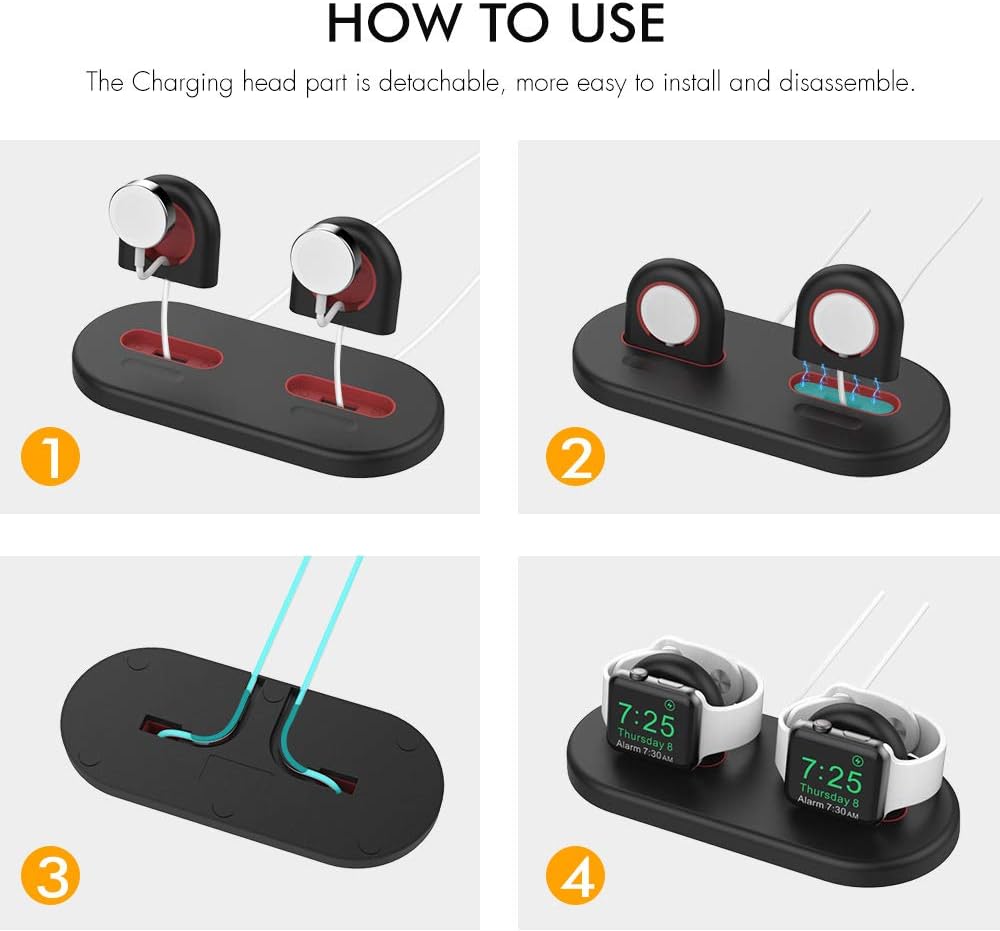 • ⌚[تصميم 2 في 1] يمكن لهذا الحامل المزدوج شحن ساعتي Apple في نفس الوقت، وهو مثالي للأزواج والأشقاء والعائلة بأكملها.