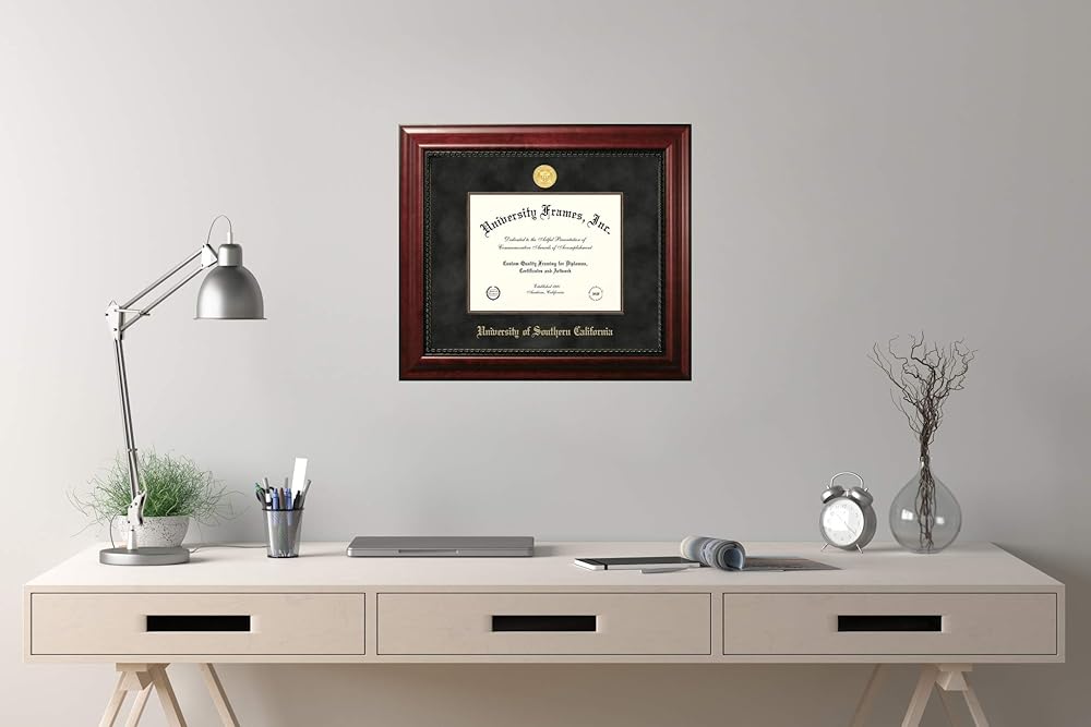 Our executive frame is custom made of high quality wood , an intricate rope pattern on the frame's inner edge, rich black suede matting and the wood fillet liner (finished to match the frame) are further Innovations designed to highlight your diploma in a style usually seen only in fine art galleries. The back of the frame is completely finished with a heavy duty dustcover, wall bumpers and a hanger. Custom made to fit any diploma size.
