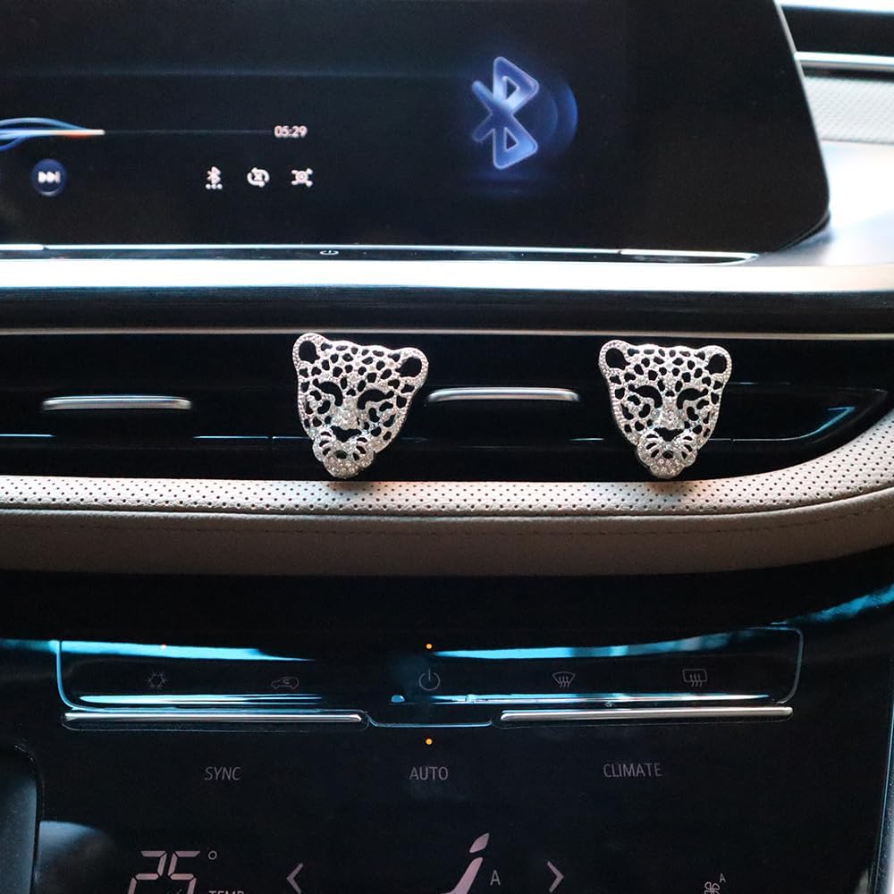 وظيفة المنتج: تتميز مشابك فتحة تهوية السيارة ذات الرأس الفهد اللامع بمظهر لامع وجميل يحسن جماليات الجزء الداخلي من السيارة. معطر هواء السيارة قابل لإعادة الملء لتحسين الرائحة. رائع وعملي، ويوفر المساحة.