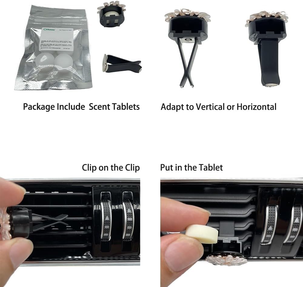 حزمة حميمة: قطعتان من مشابك تهوية السيارة اللامعة، حزمة واحدة (4 قطع) قرص معطر للسيارة، قطعتان من اللباد، 1 صندوق تخزين من البولي بروبيلين. جعل الاستخدام أكثر ملاءمة وطويلة الأمد.