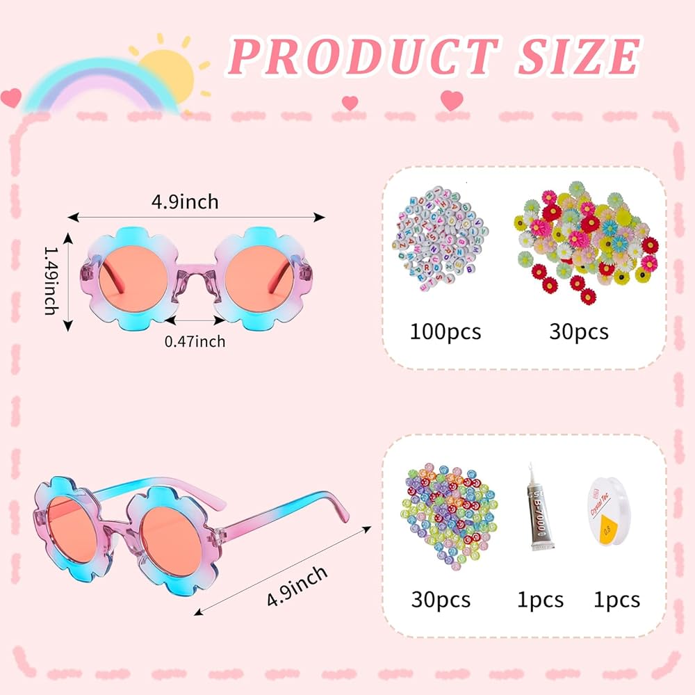 【ألوان زاهية】: مجموعة النظارات الشمسية الخاصة بنا للأطفال ملونة، سيحبها الأطفال بالتأكيد، ويمكن دمج خرزات زهرة الأقحوان الملونة وخرز الحروف ولصقها على الإطار، ويمكن للأطفال تصميم نظارات شمسية فريدة من نوعها، فهي تسمح لأطفالك بالحصول على وقت رائع بينما تبدو رائعًا ومتميزًا عن الآخرين.