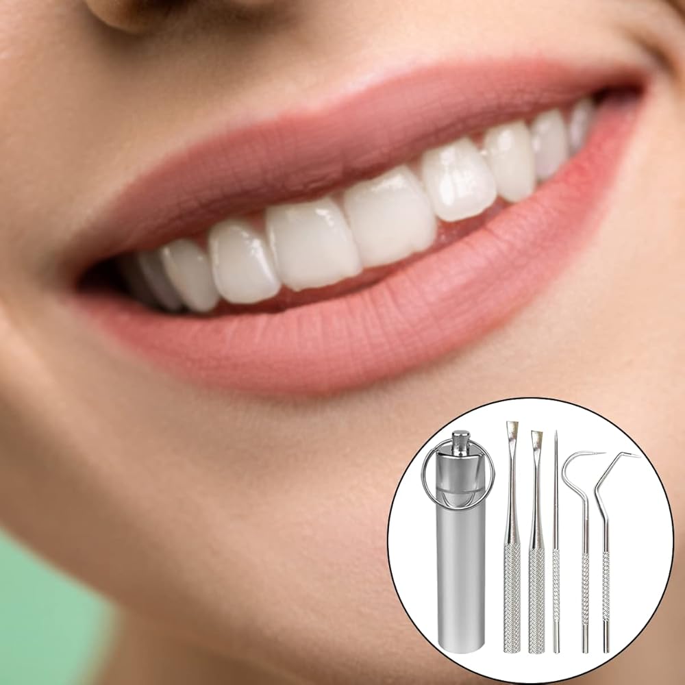 [Multi-Shape]:The metal toothpick comes in 5 different shapes to get rid of tartar anywhere in your mouth and keep your breath fresh