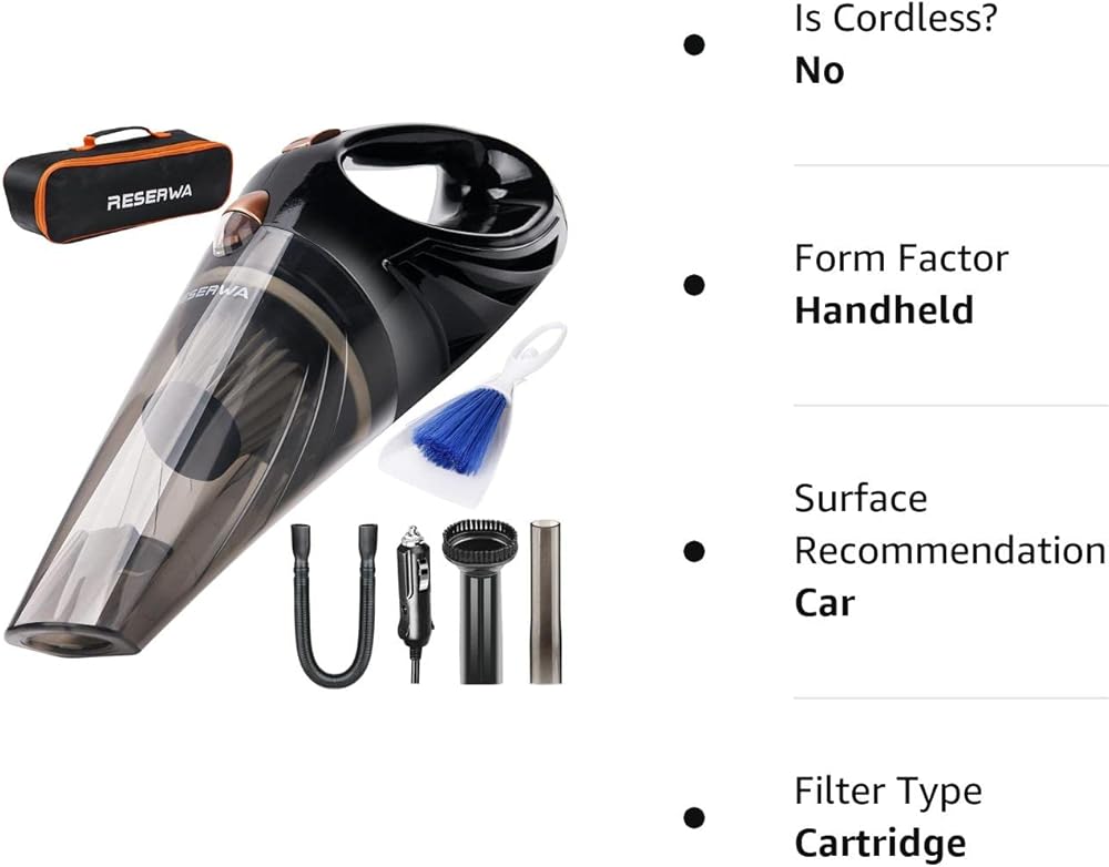 ✔Reserwa [5th Gen] car vacuum cleaner have high power up to 7500Pa suction, which can effectively clean the dust,litter,liquid,pet hair inside the car.