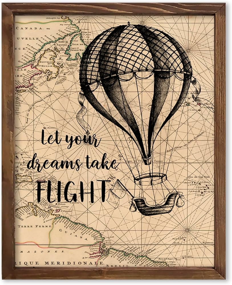 خمر بالون الهواء الساخن اقتباس ملهم طباعة فنية دع أحلامك تأخذ رحلة الحضانة ملصق غرفة الأطفال جدار الفن السفر جدار ديكور مغامرة جدار الفن 8x10 inc. طباعة غير مؤطرة