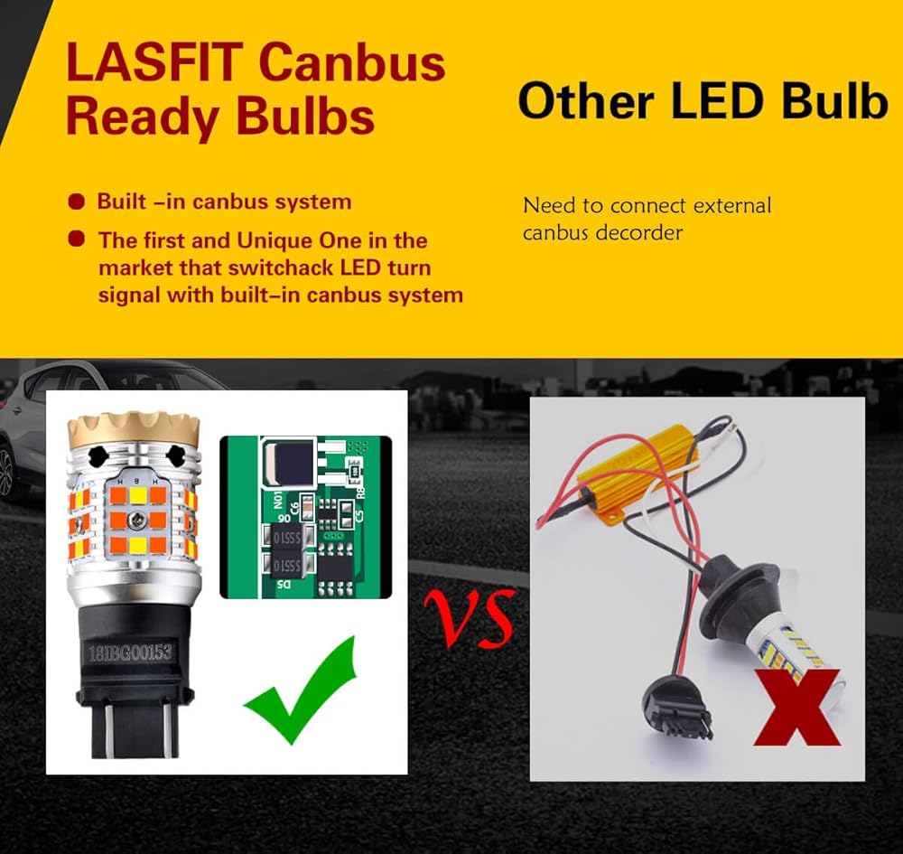 LASFIT 3157CK LED Switchback 3057CK 4057CK 4157CK فقط لمقبس CK ثنائي اللون أبيض/كهرمان LED مصباح إشارة الانعطاف CANBUS خالٍ من الأخطاء ضد فرط فلاش لمبة (2 قطعة)