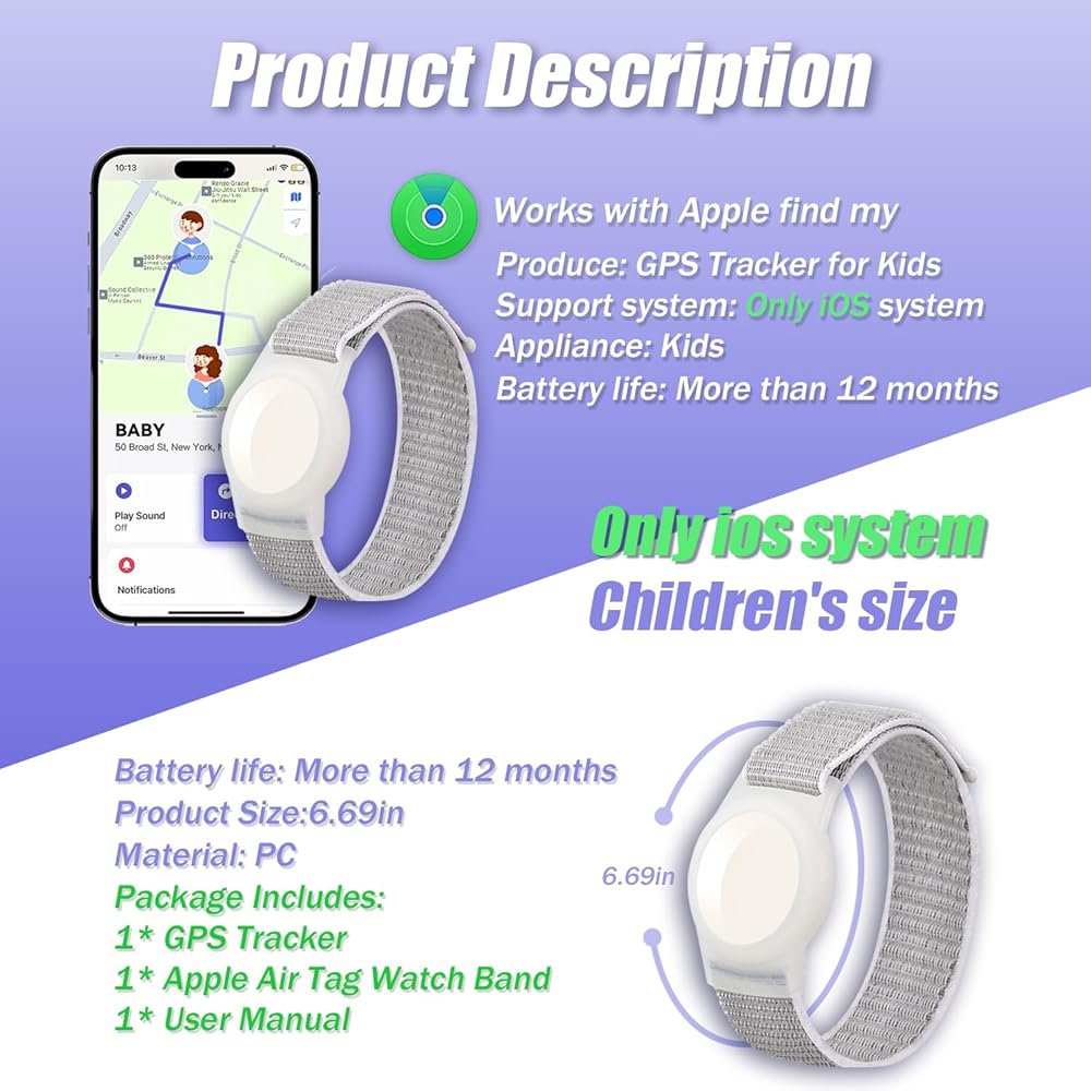 • 【Compatible with Apple Find My】Keep track of your child effortlessly with our GPS tracker Tag. Utilize the "Find My" app to locate your child in busy locations like parks or malls. (🔴 Only compatible with iOS, not Android).