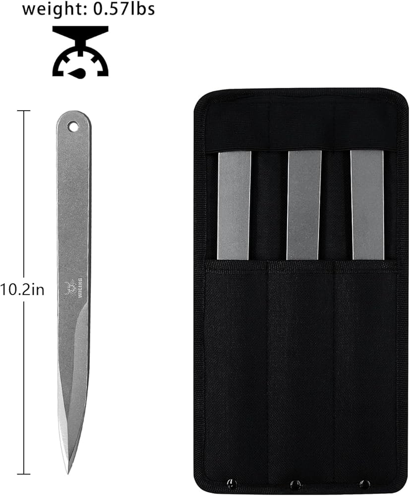 • Durable & Reliable: The throwing kit is made of stainless steel, has a Full Tang construction design, and its 0.236" thickness, its ensures durability and can withstand the impact of throws, making it resistant to bending or breaking during use.