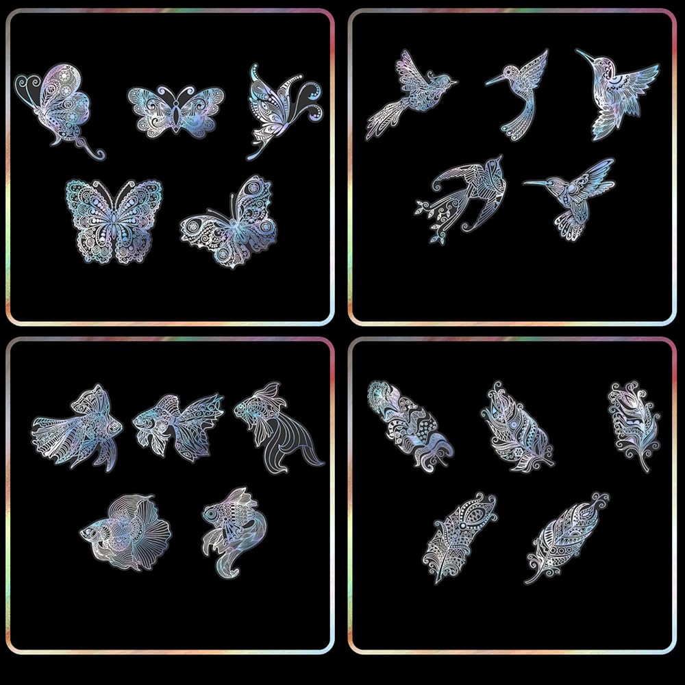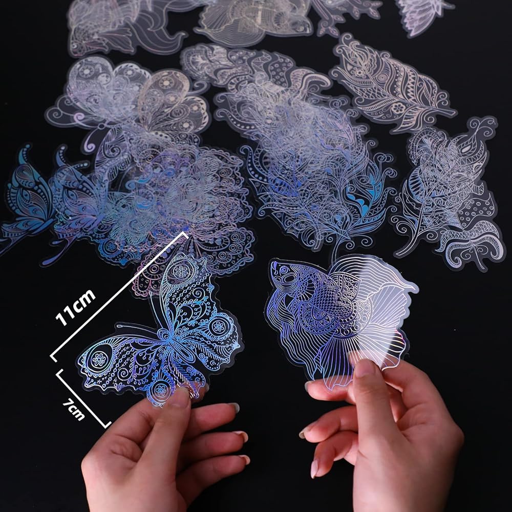 • Good Visual Effect: Our holographic stickers are a must-have for anyone who loves adding some sparkle and whimsy to their crafts and projects! Each package comes with 40 pieces large-sized transparent stickers in various shapes and themes, including hummingbirds, feathers, butterflies, and fish. The rainbow shift effects on these silver holographic stickers are truly stunning and eye-catching!