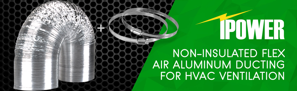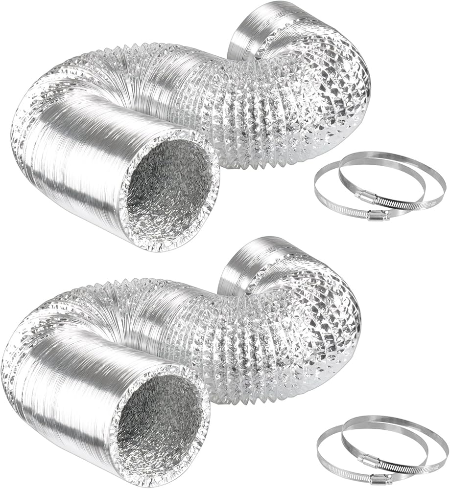 iPower 6 بوصة 16 قدم غير معزول فليكس الهواء الألومنيوم مجفف تنفيس خرطوم للتهوية HVAC، 2 حزمة، وشملت 4 المشابك