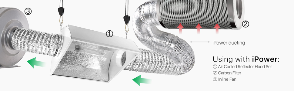 iPower Ventilation Ducting is made from high quality aluminum to provide flexibility and protect against breaking during installation. Not only does the duct act as in intake and exhaust piping for active-cooled fixtures and reflectors, but also stores and dissipates heat at a steady rate, which reduces room temperature fluctuations.