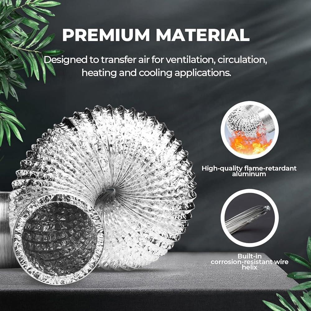 • Ducting feature: built-in steel wire for reinforcement and long lasting performance. Flexible length for inline fan; when not in use, it takes up little space.