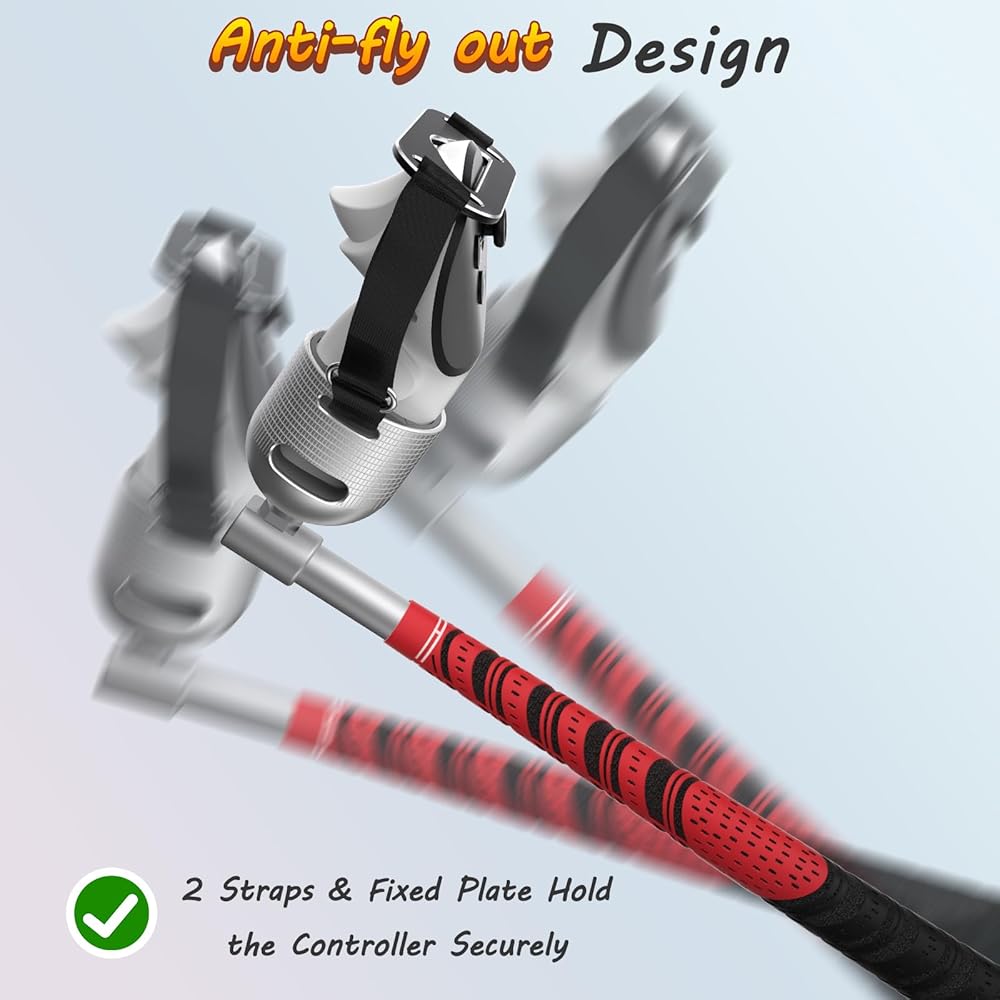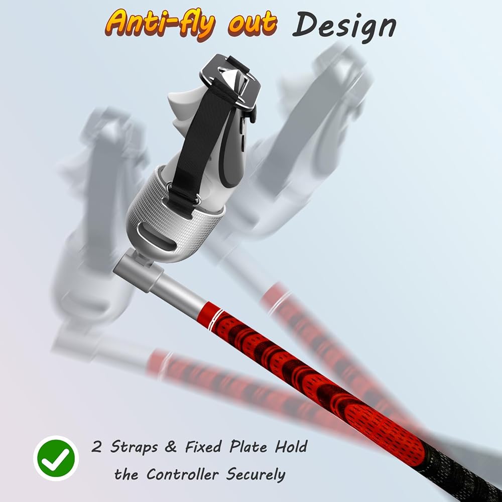 【لوحة ثابتة لوحدة التحكم المضادة للطيران وشريطين آمنين】: نحن نقدم لوحة ثابتة لنادي الغولف Quest 3 لمنع وحدات التحكم الخاصة بك من الطيران أثناء ألعاب الواقع الافتراضي المكثفة. بالإضافة إلى ذلك، يوجد شريطان على كلا الجانبين لتثبيت وحدة التحكم الخاصة بك في مكانها بشكل آمن، مما يمنعها من الطيران أو السقوط أثناء التأرجح في نادي الجولف الواقع الافتراضي.
