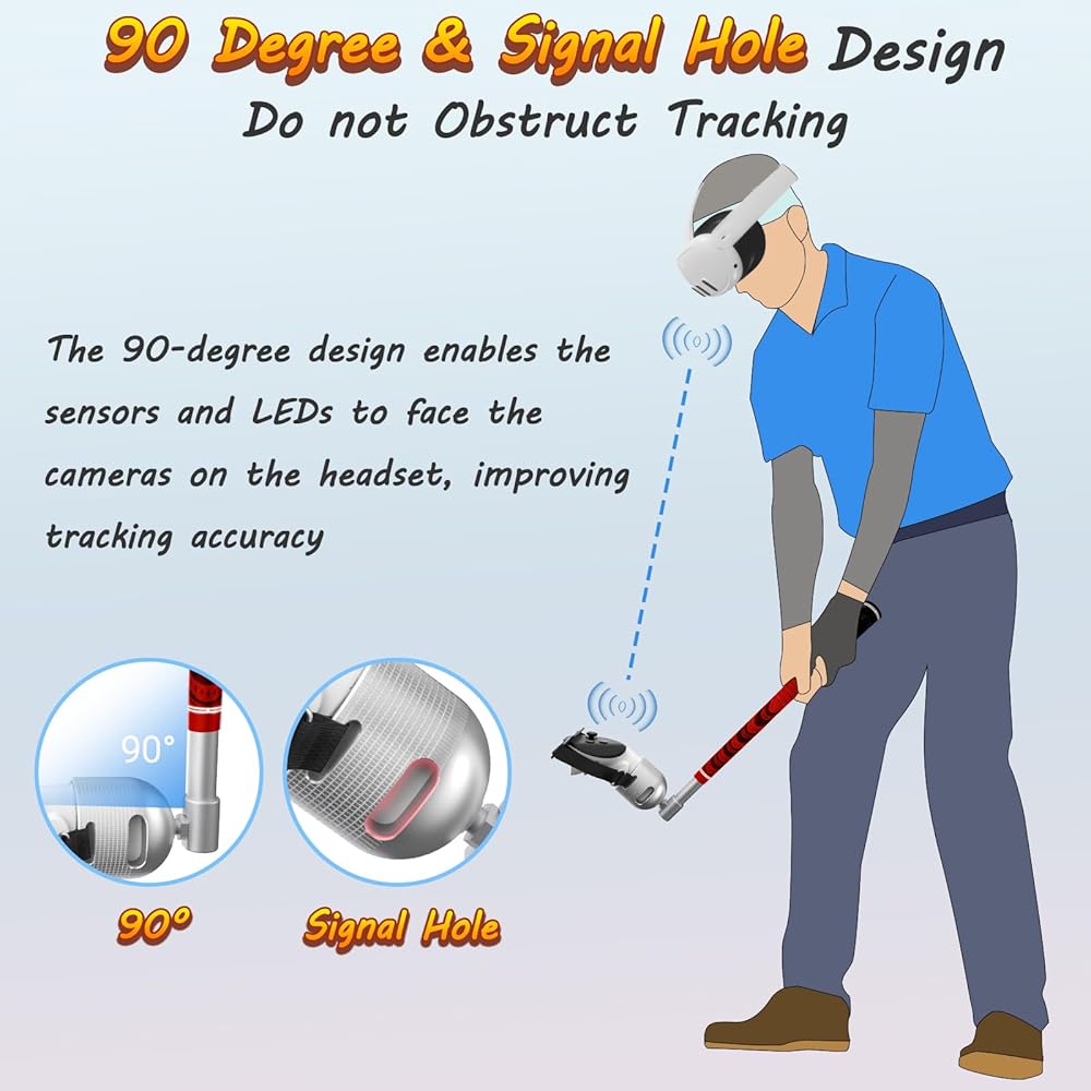 【إشارة غير منقطعة】: يسمح التصميم المبتكر لزاوية الإمالة وموضع فتحة الإشارة بإشارة إلغاء الحظر، مما يضمن حصولك على لعب سلس ومتواصل. يعمل نادي الجولف VR هذا على تعزيز تجربة لعبة الجولف الغامرة في عالم الواقع الافتراضي.