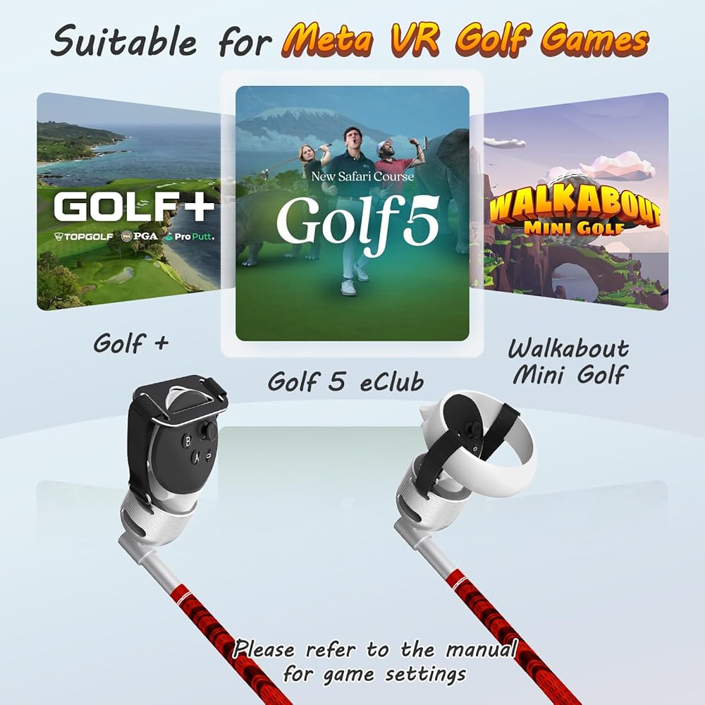 【التوافق: يتوافق ملحق نادي الجولف VR هذا مع Meta Quest 3/2، وOculus Quest 3/2 ويمكن استخدامه فقط مع وحدات التحكم الصحيحة. يرجى ملاحظة أن وحدات التحكم غير متضمنة.