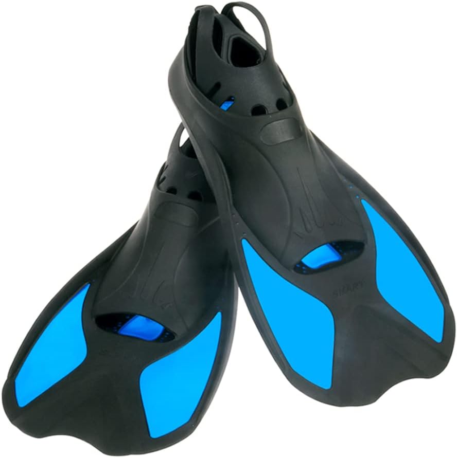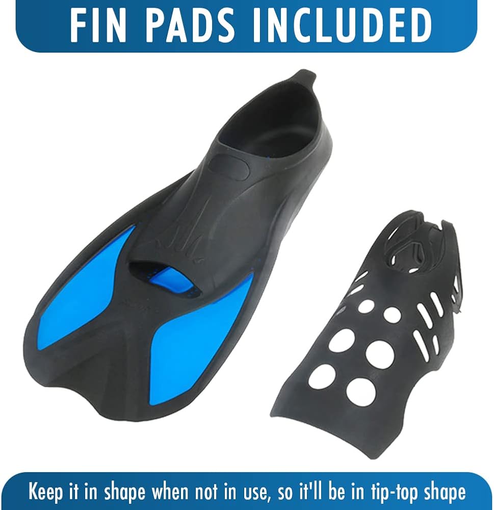 زعانف الغطس قصيرة زعانف السباحة العائمة للتدريب على المقاس الأمريكي XL عرض الكاحل 3.3 بوصة مع زعانف سفر من المطاط اللدن بالحرارة للسباحة والغوص والغطس والرياضات المائية، أزرق